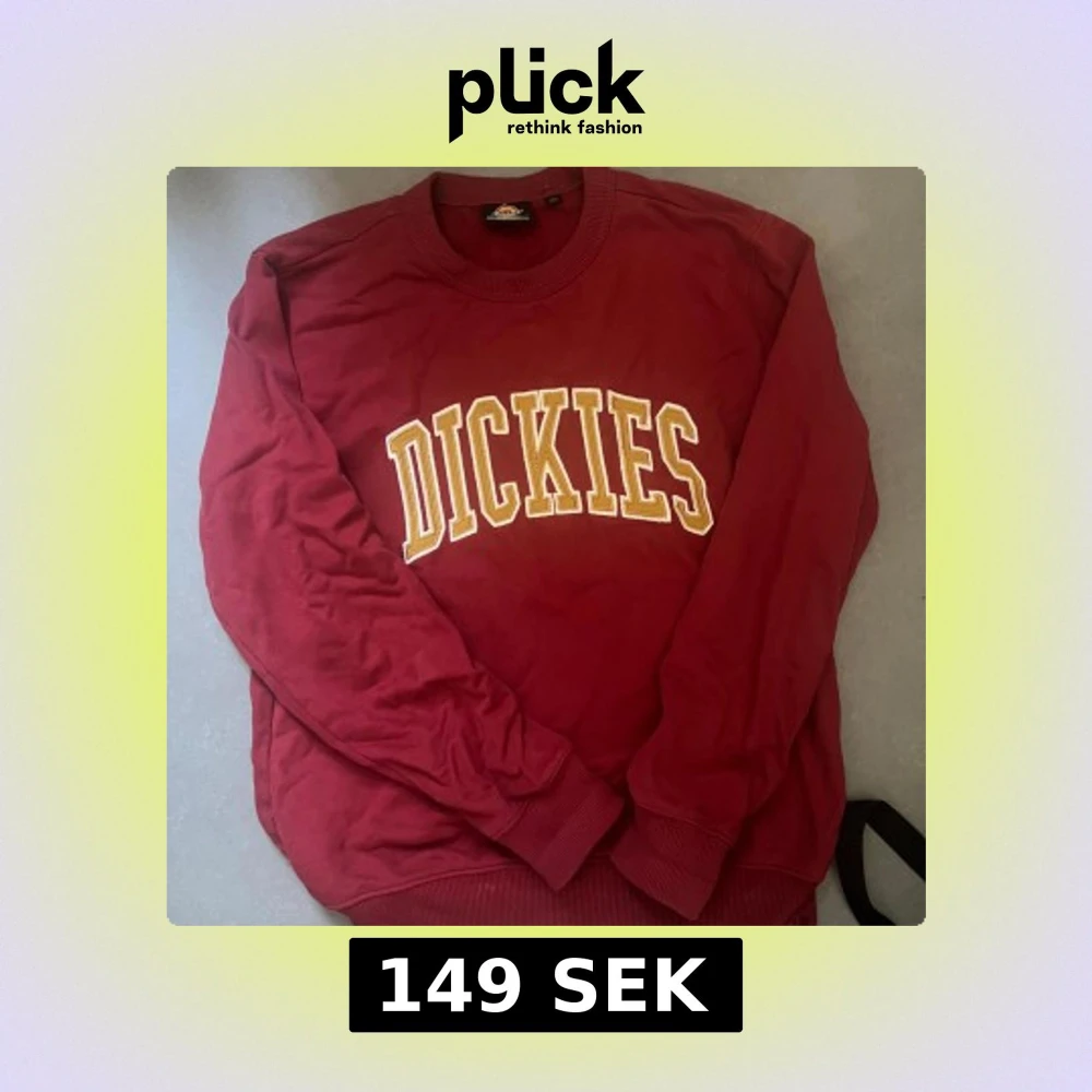 Säljer en röd sweatshirt från Dickies med stort tryck på bröstet. Tröjan har långa ärmar och ribbade muddar vid ärmslut och nederkant. Perfekt för en avslappnad stil.