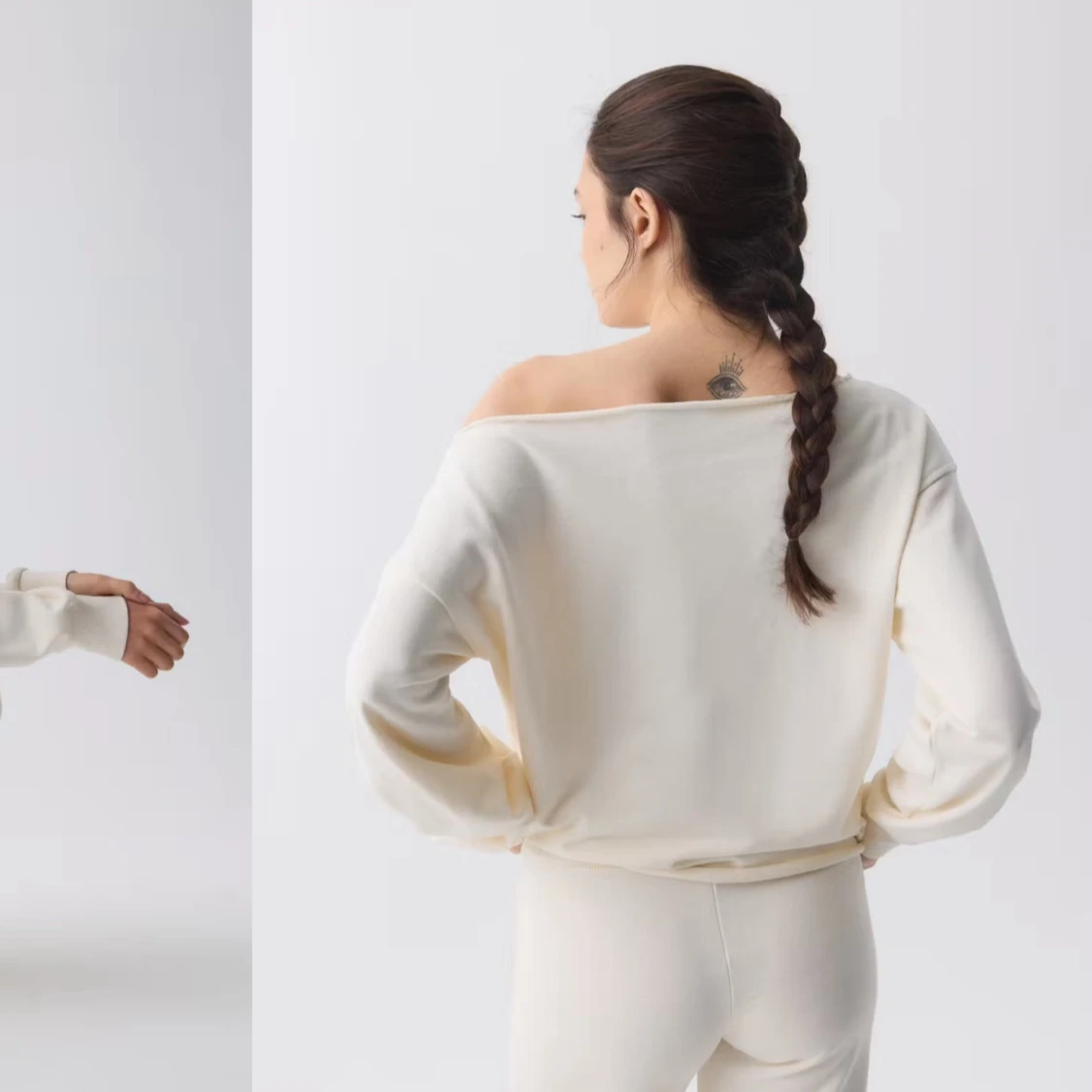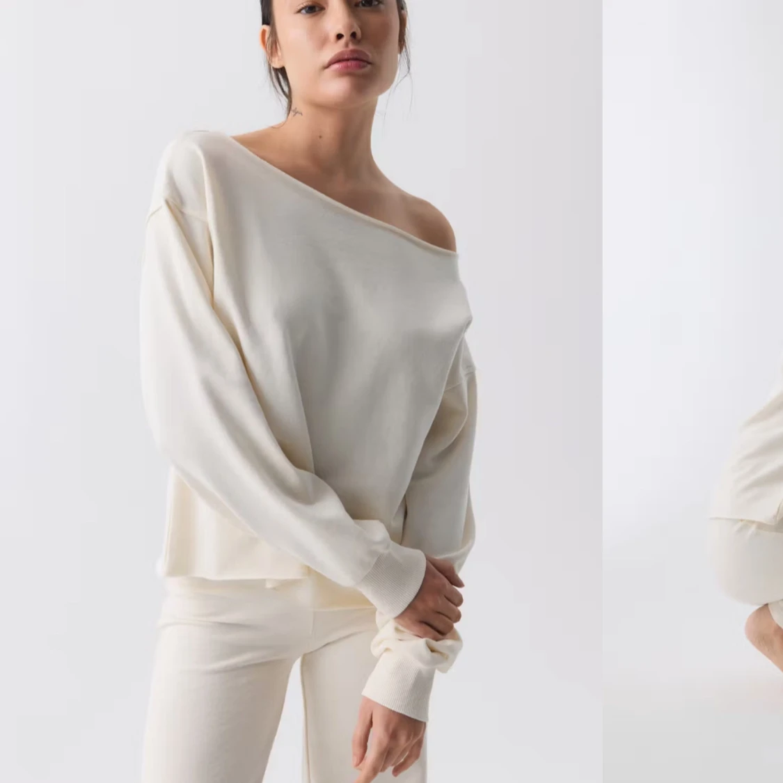 Säljer en stilren vit offshoulder tröja med lång ärm. Perfekt för en avslappnad look. Tröjan har en lös passform och är tillverkad i ett mjukt material.