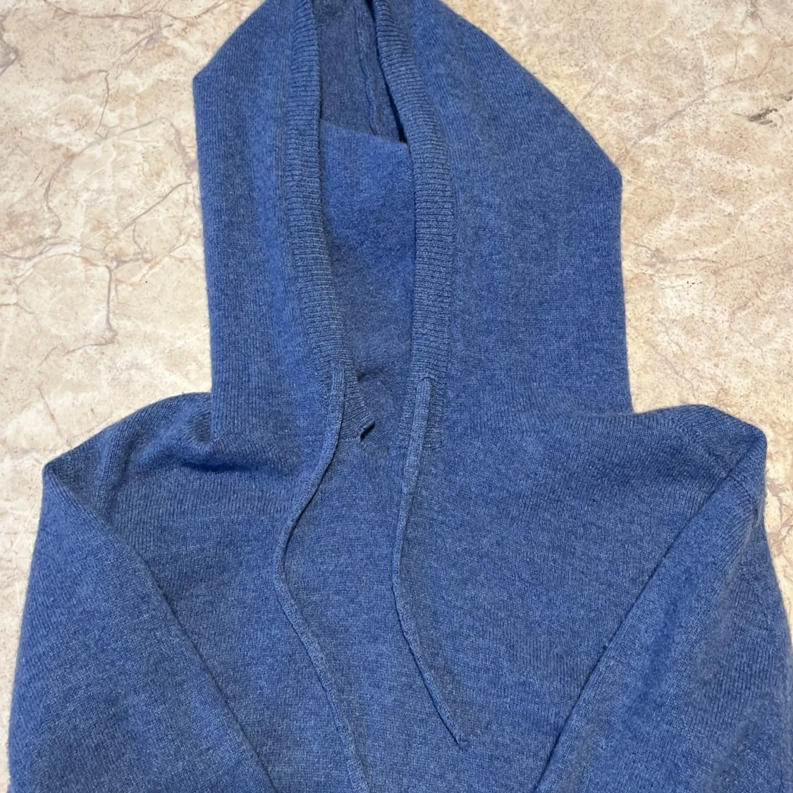 Säljer min snygga kashmir hoodie pga att den blivit för liten för mig. Endast en liten defekt som syns på bild 2 därav de billiga priset. Tröjan är skön och stilren och perfekt till det kalla vädret. Tröjan är storlek S.