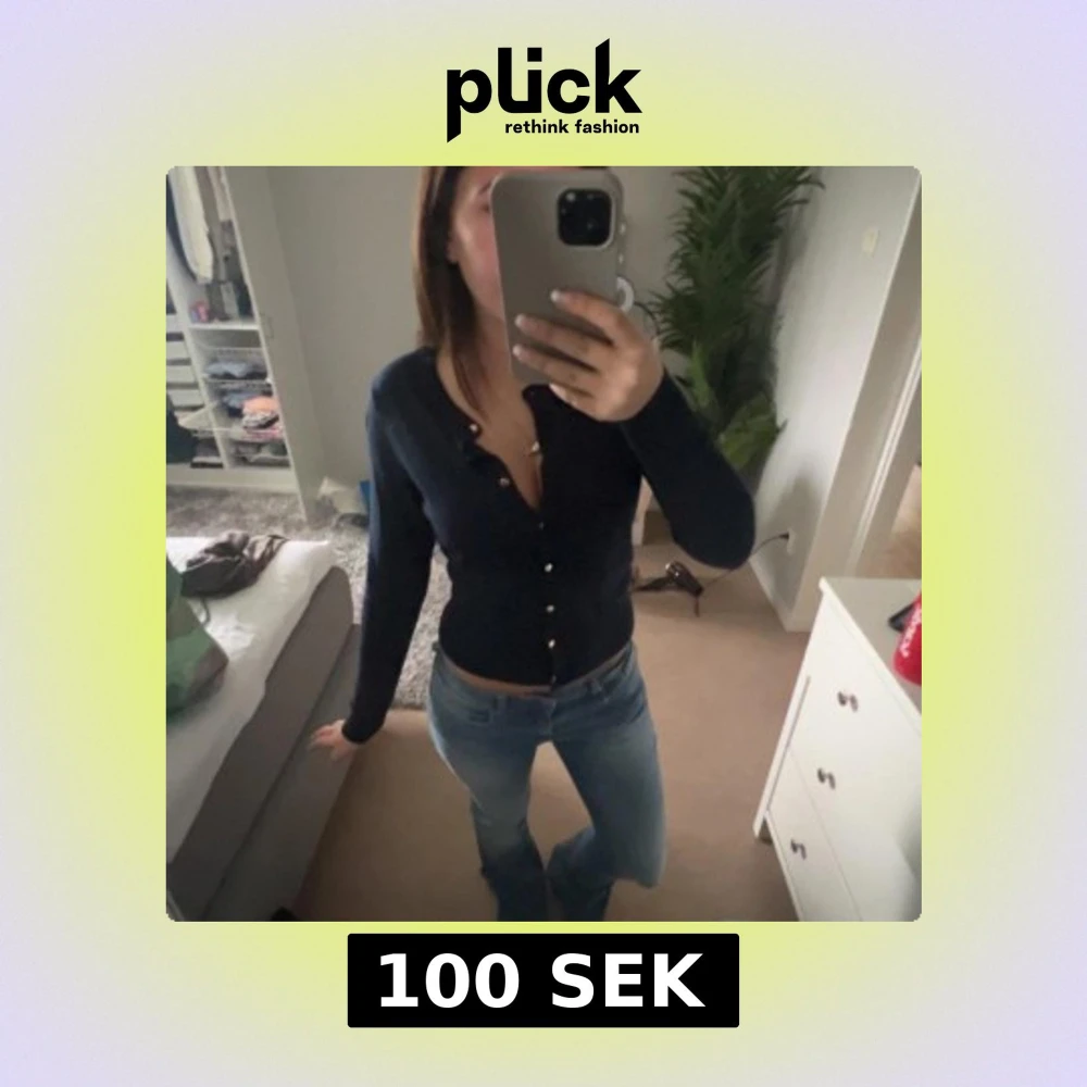 Säljer en mörkblå kofta med långa ärmar och knappar framtill. Perfekt att ha öppen eller stängd över ett linne eller t-shirt. Enkel och stilren design som passar till mycket.