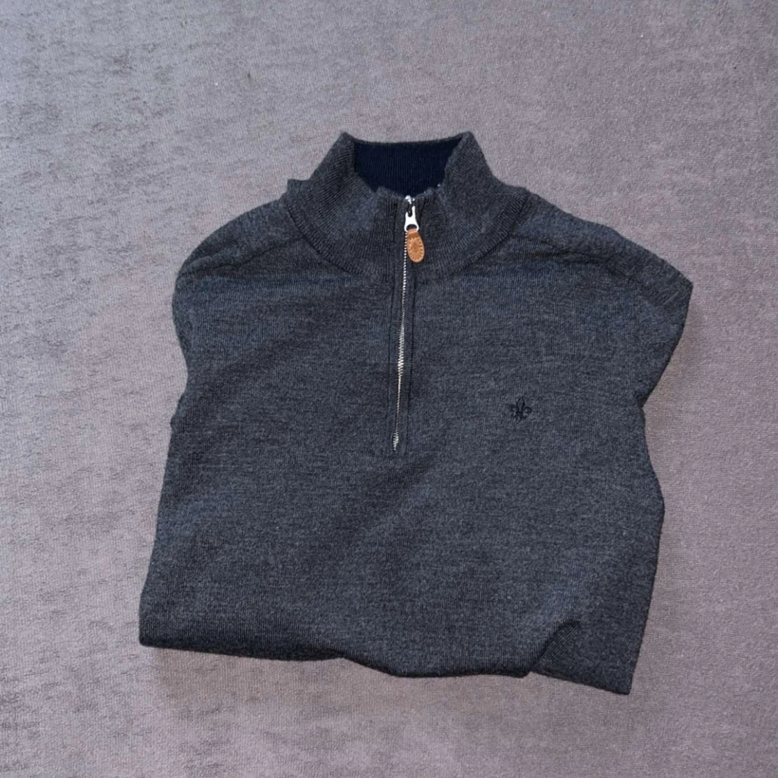 Morris stickad Half zip tröja. Storlek L storleken är dock mer en liten L eller Stor M. Inga tecken på slitage och är i helhet väldigt bra skick. Använde den Max 15 gånger då storleken inte riktigt va bra. Skriv om de är några frågor.Nypris 1799kr