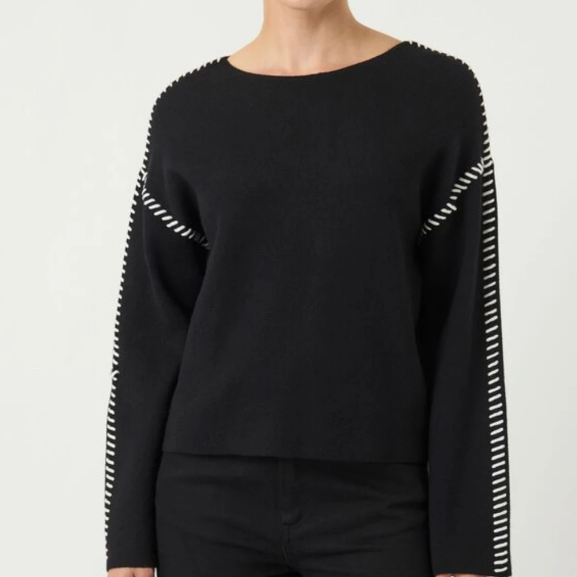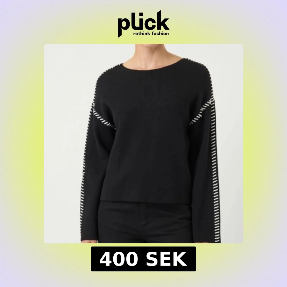 Snygg svart stickad tröja med vita detaljer längs ärmar och axlar ifrån YAS. Perfekt för dig som gillar en stilren look med en twist. I superfint skick samt storlek M. Nypris: 699kr