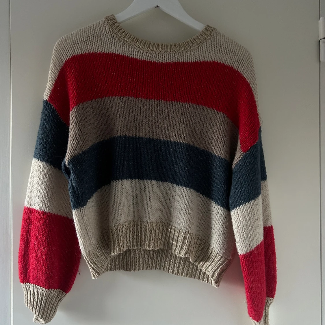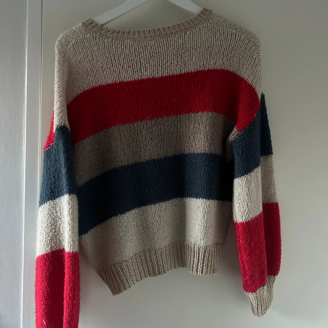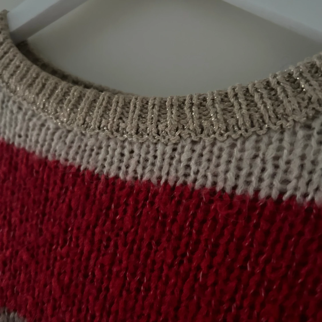 En super mysig och snygg stickad tröja i väldigt bra skick.💘 Den har olika färger bland annat guld längst upp och ner. 💛Perfekt till lite kallare sommarkvällar☀️