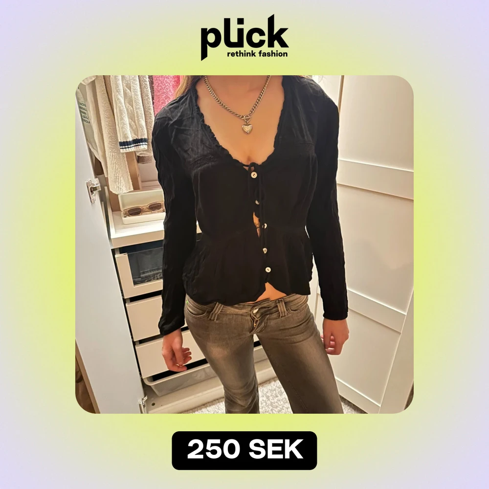 Snygg svart blus. Super bekväm och snygg passform, tyvärr lite för liten. Bra kvalitet. Pris kan diskuteras och skriv för fler bilder❤️