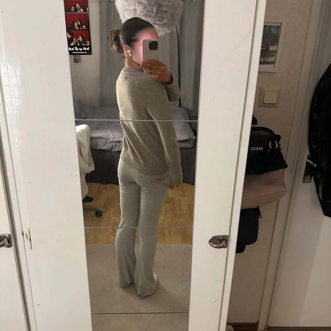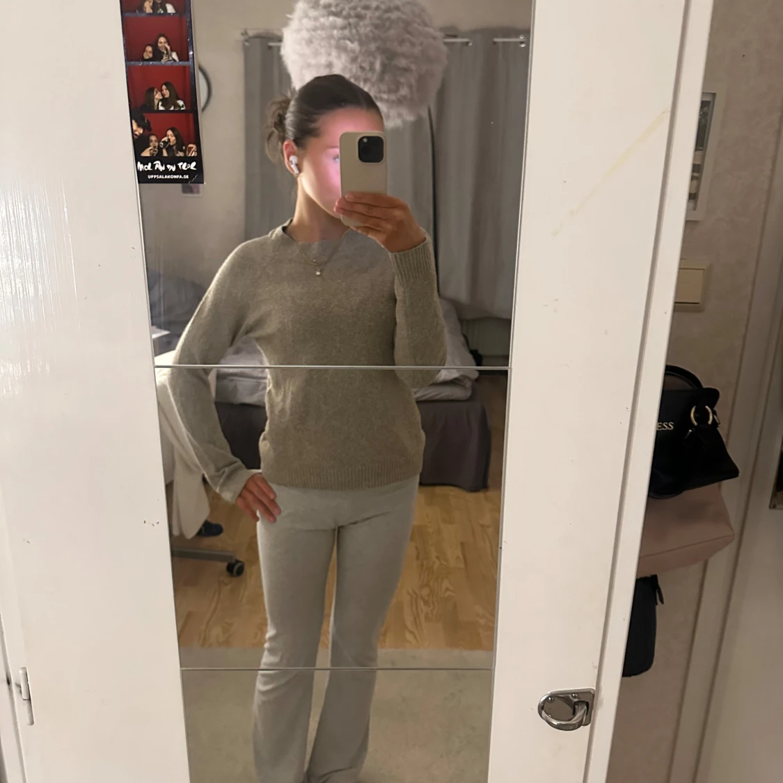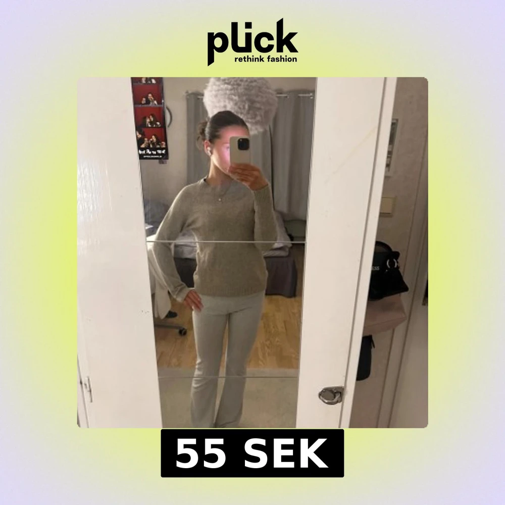 Säljer en stilren beige stickad tröja med långa ärmar. Perfekt för kyligare dagar och enkel att matcha med olika outfits. Tröjan har en klassisk design med ribbade muddar vid ärmslut och nederkant.