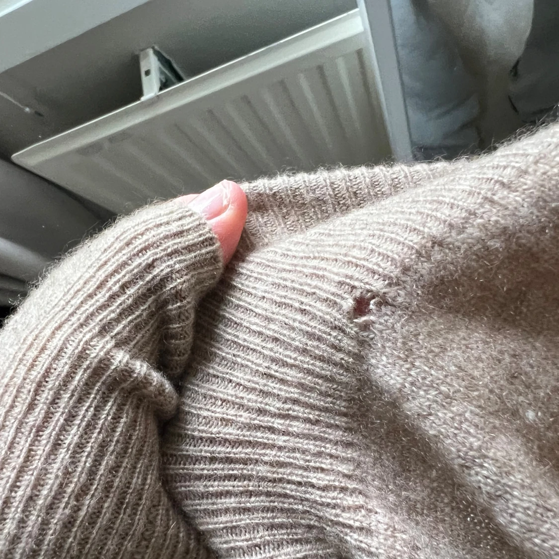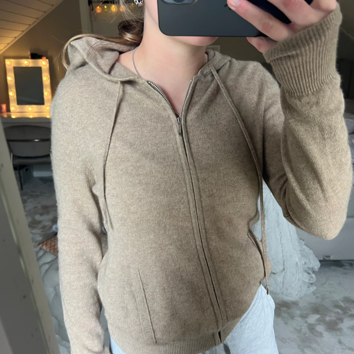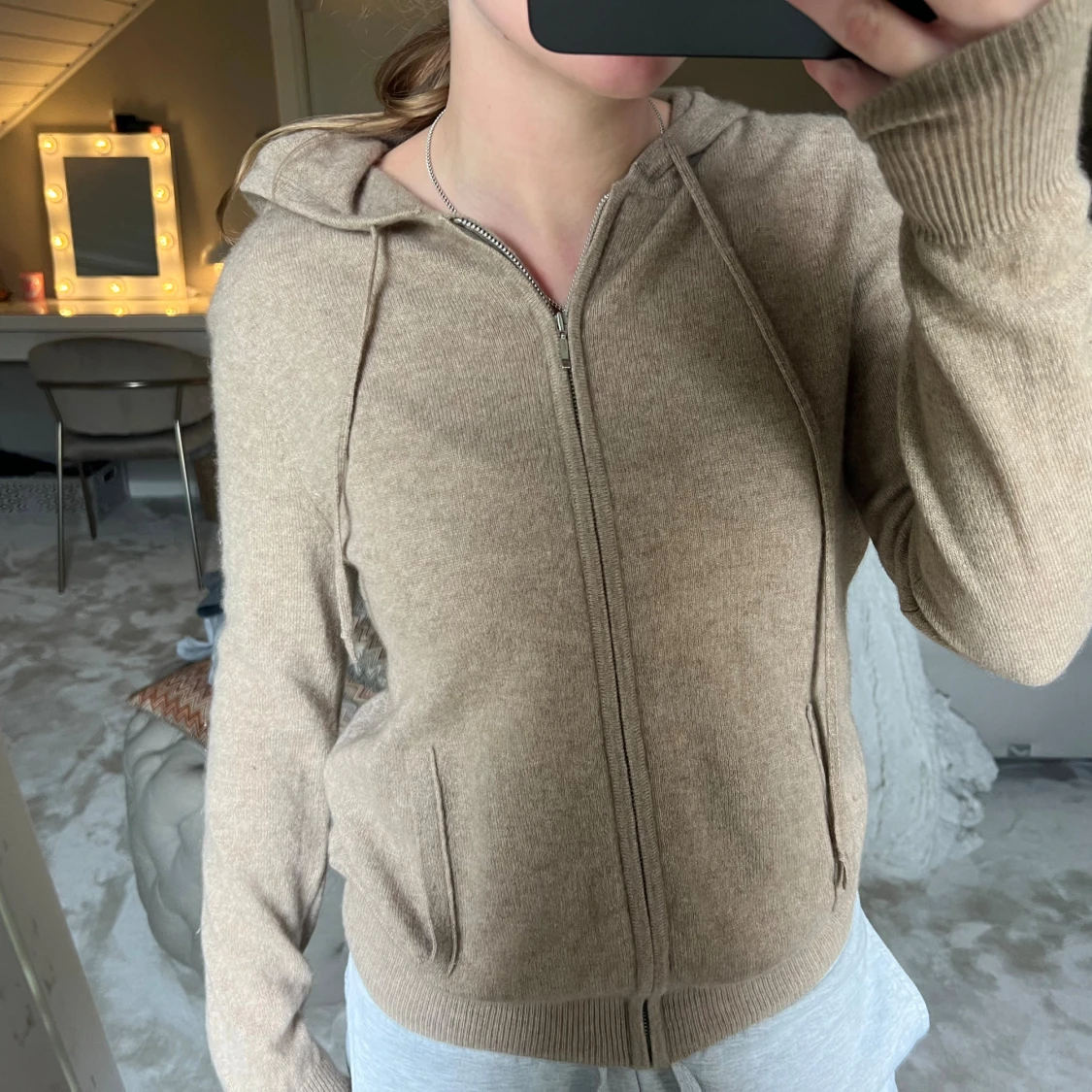 Så fin brun soft goat Cashmere tröja med luva. Bra skick förutom ett litet litet hål kolla bild 4. Annars väldigt bra skick.