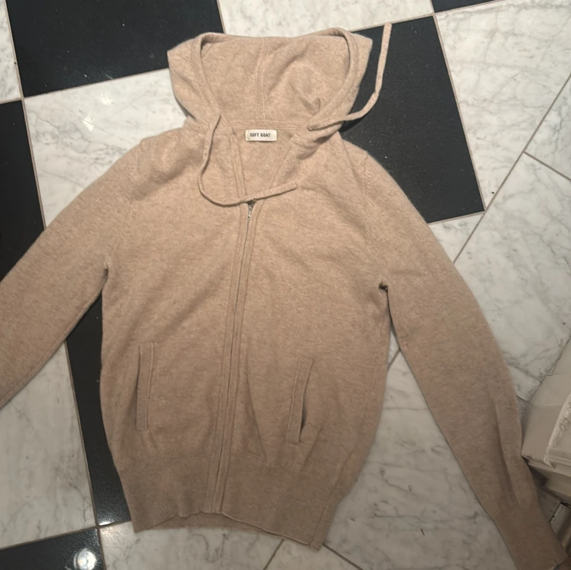 Mysig beige hoodie från Soft Goat i Kashmir. Jättefin och hade gärna haft kvar den, men är för liten för mig. Nypris: 2695kr. Använd ca 2 gånger skulle jag gissa och vill gärna köpa ny därför säljer jag för 1500kr.