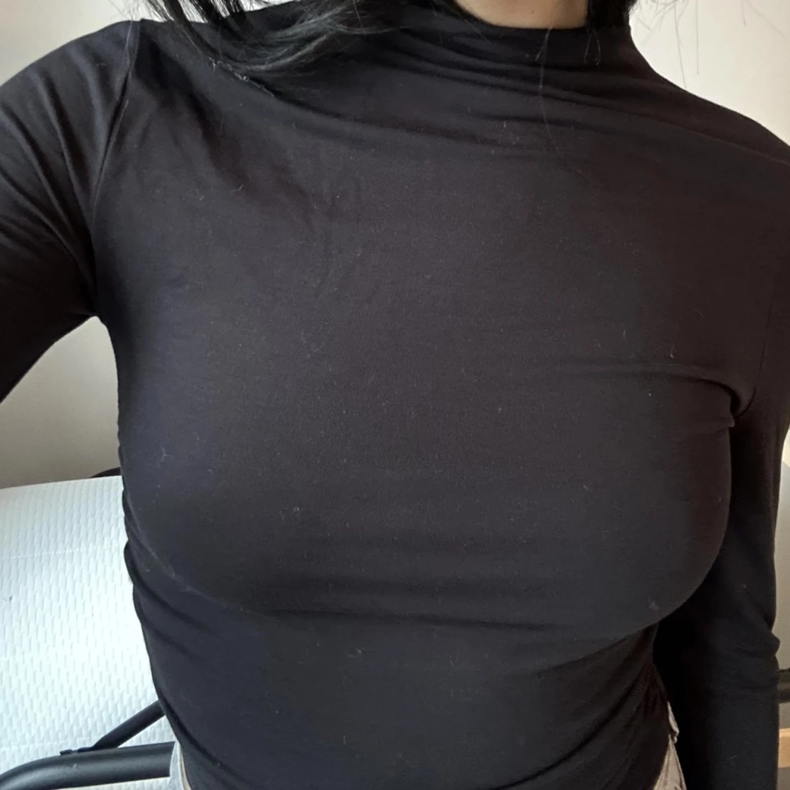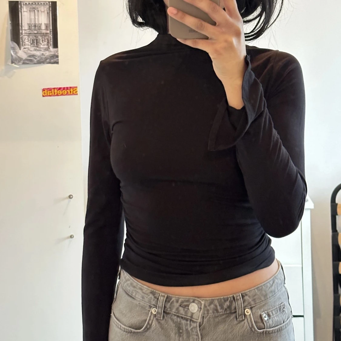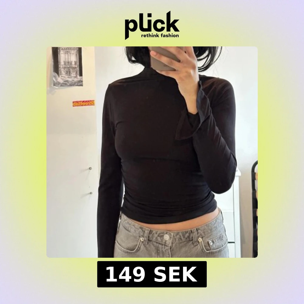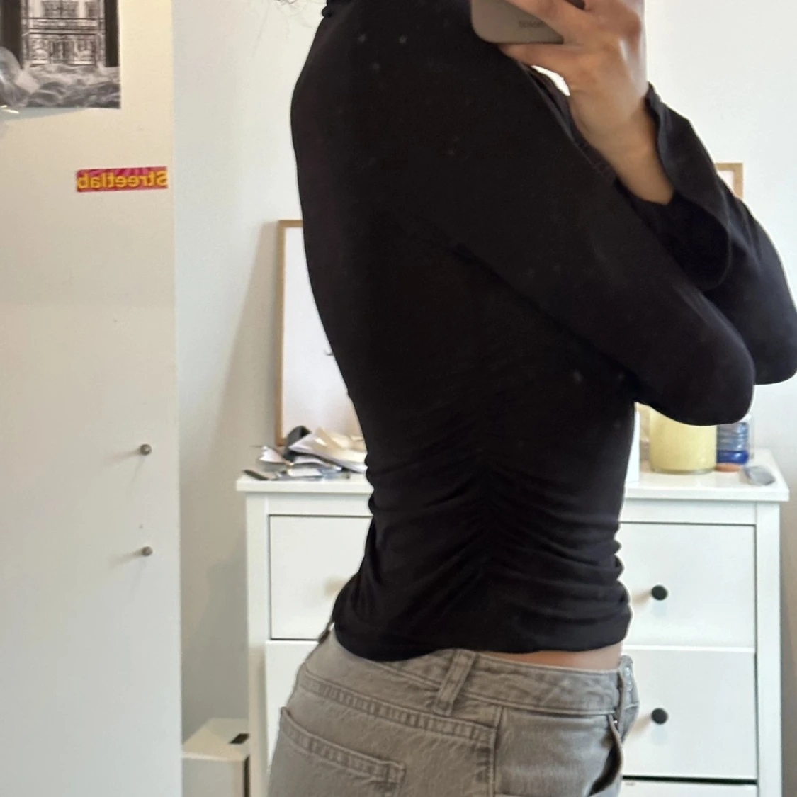 Säljer en soft touch tröja från gina tricot🖤 Med hög krage, scrunch detalj i midjan. Använd fåtal gånger.