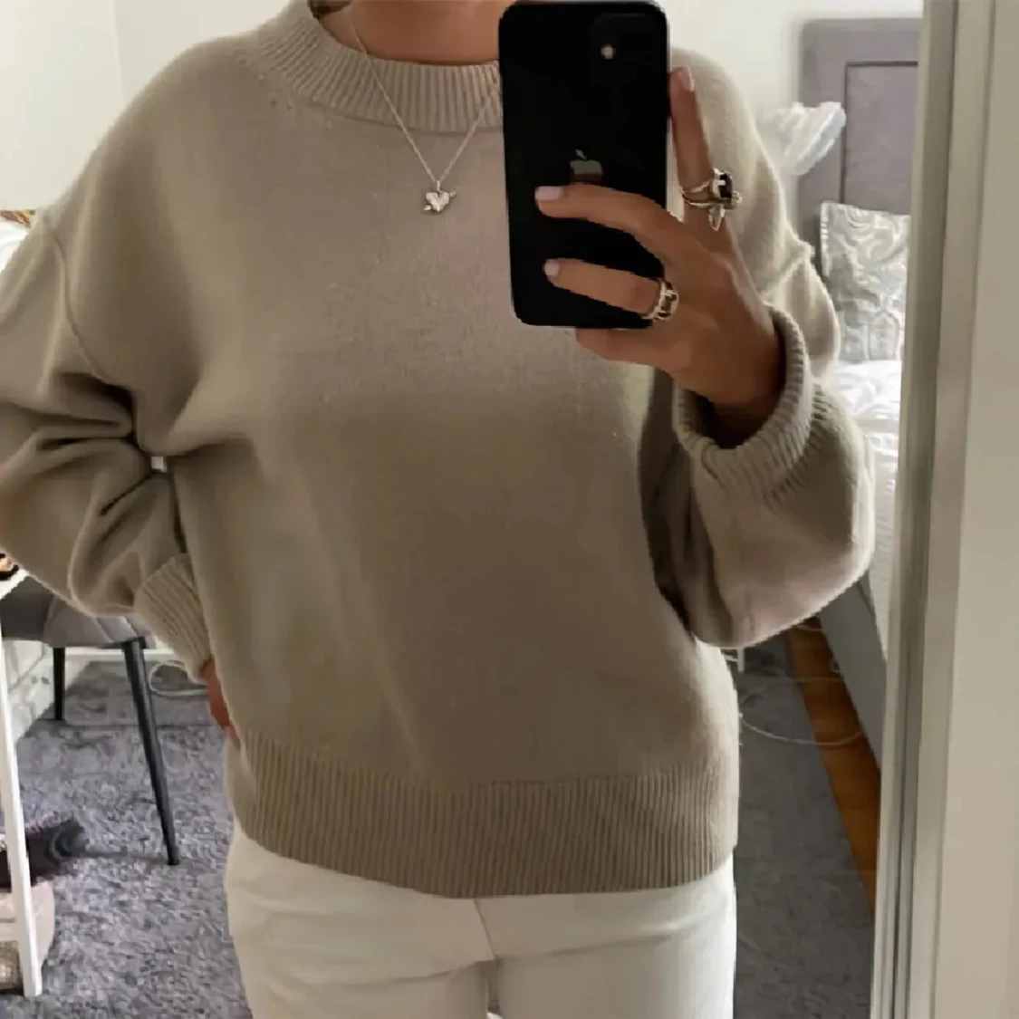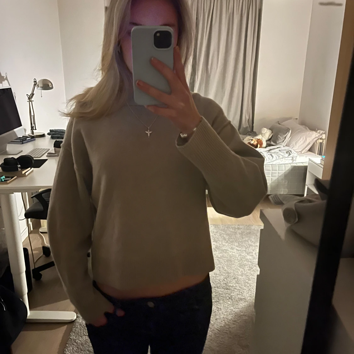 Säljer en supermysig beige Kashmir tröja i bra skick. Köpt på plick men i toppskick, nypris 1699kr❤️ Första tre bilderna är tjejen 170cm jag är upp mot 175 så där ser man skillnaden på länge lite har också lågmidijade jeans på mig ❤️