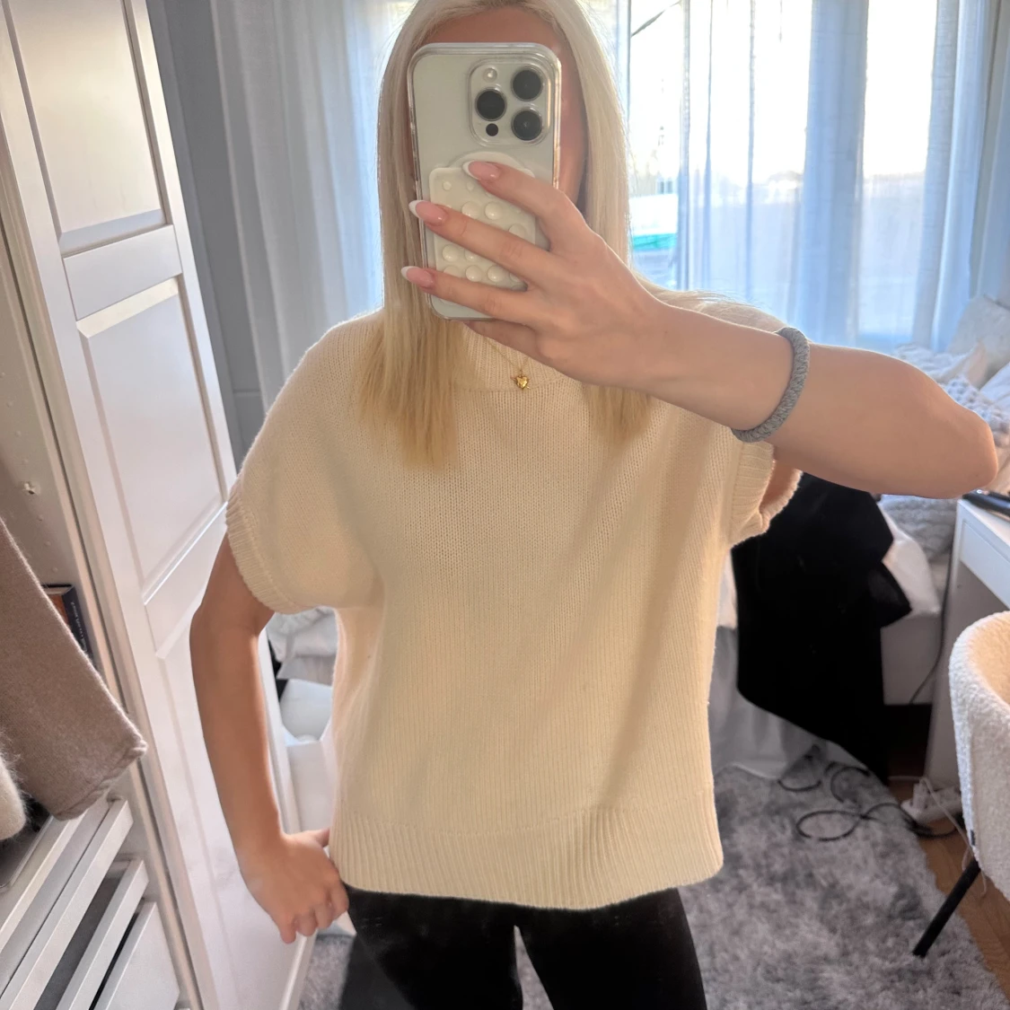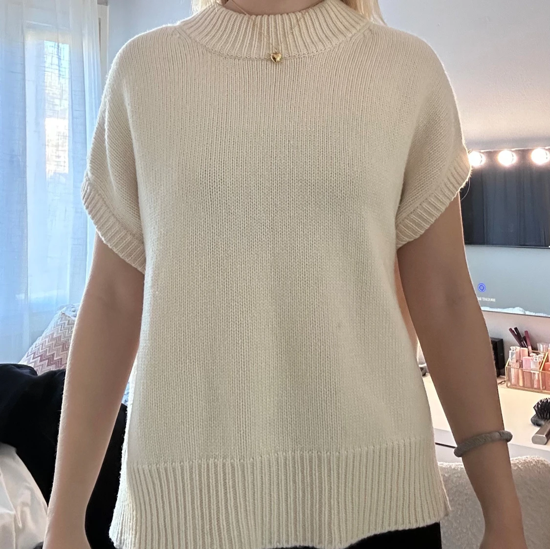 Superfin beige stickad tröja från Soft Goat. Det har lite lite smink vid halsringningen och några små fläckar på framsidan men tröjan är i riktigt bra skick! Tröjan säjls inte längre, så jag säljer den till högsbjudande 💞💞