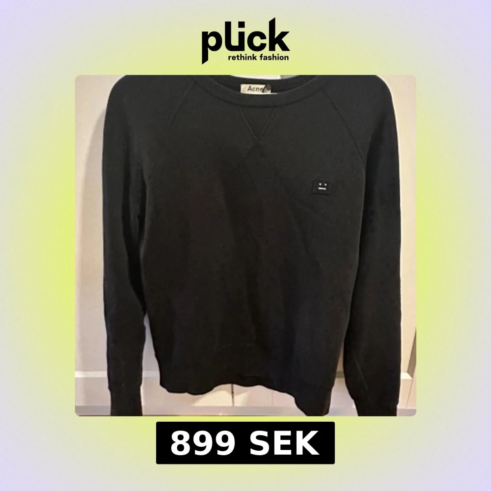 En stilren svart sweatshirt från Acne Studios. Nästan nyskick bortsett från ett litet hål som man ser på bild 3, men den sitter på underarmen så det hålet ser man typ aldrig. Nypris är 3500 kr. Perfekt längden är någonstans mellan 172-180!