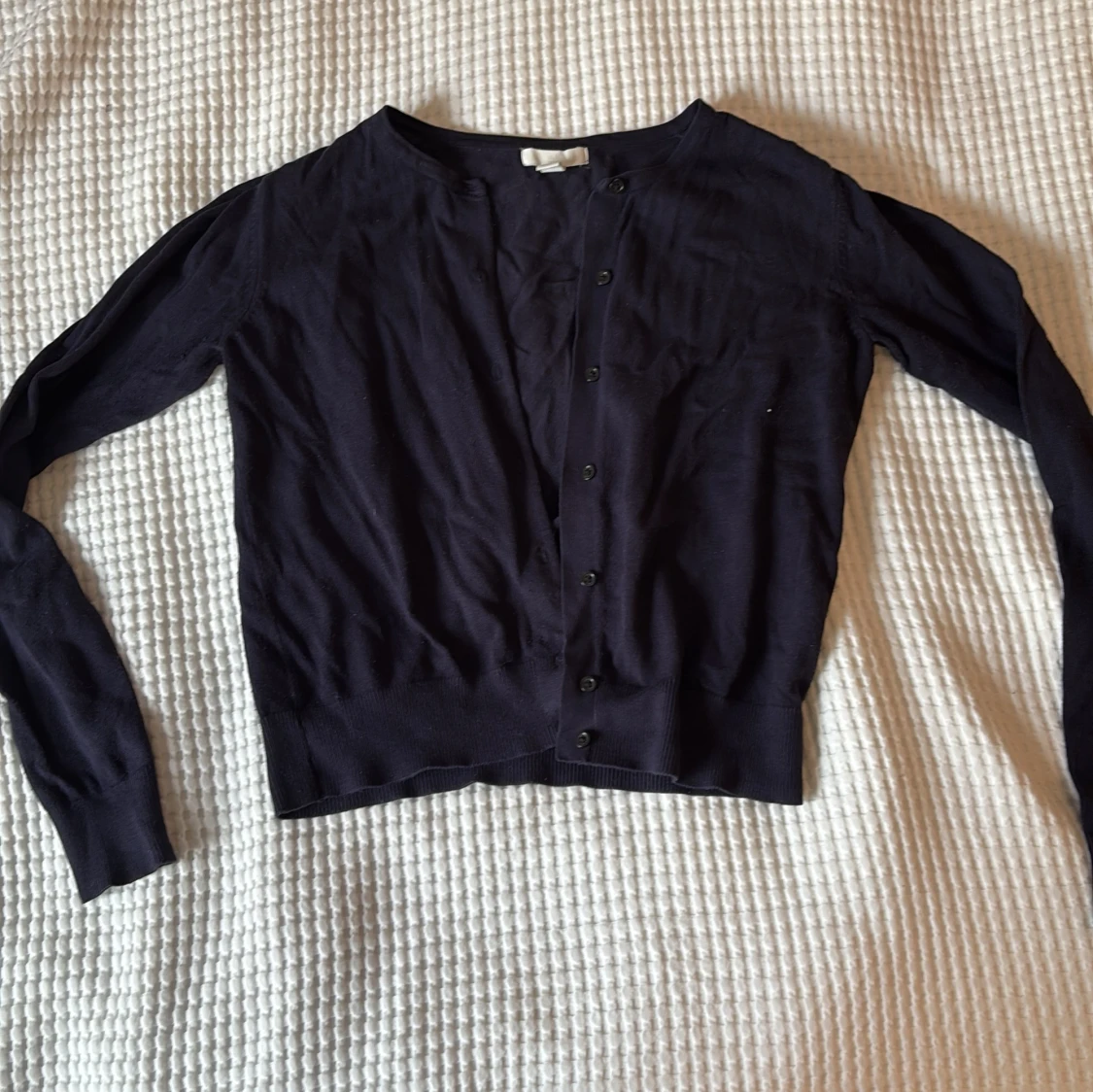 Säljer en stilren svart kofta med knappar framtill. Koftan har långa ärmar och en klassisk design som passar perfekt till olika tillfällen. Lite nopprig därav priset.