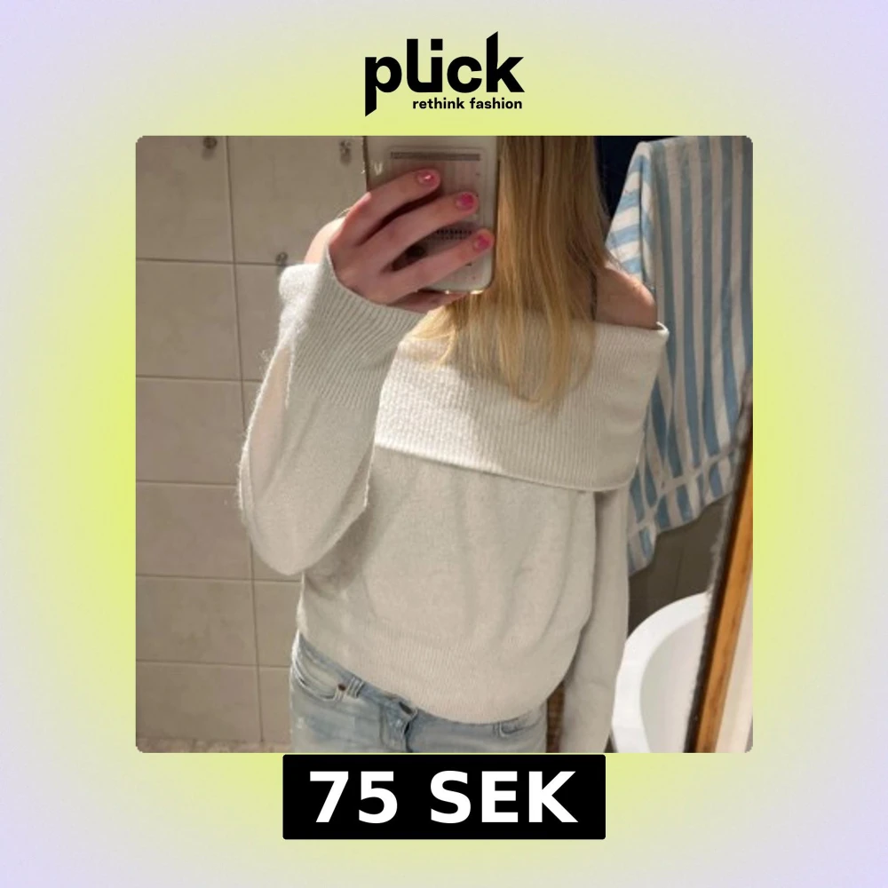 Superfin vit stickad tröja från H&M i offshoulder! Storlek XS🥰