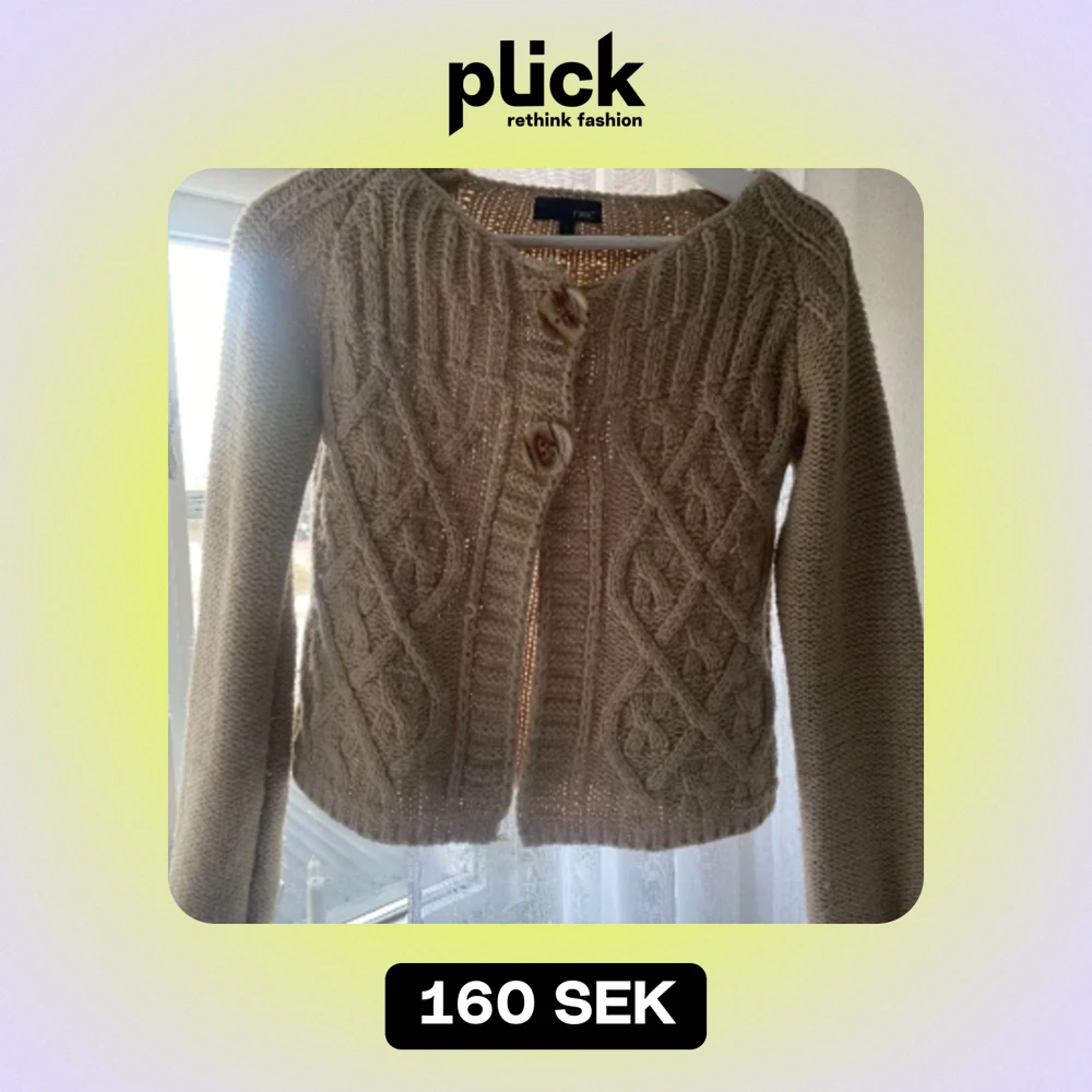 Beige kofta med två knappar upptill. Bra passform. Snygg öppen och med knapparna knäppta. Passar till de mesta & perfekt färg.