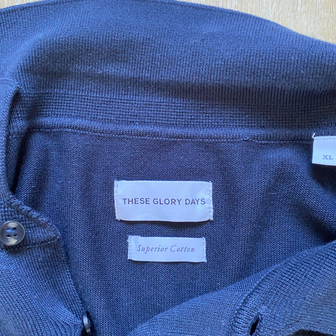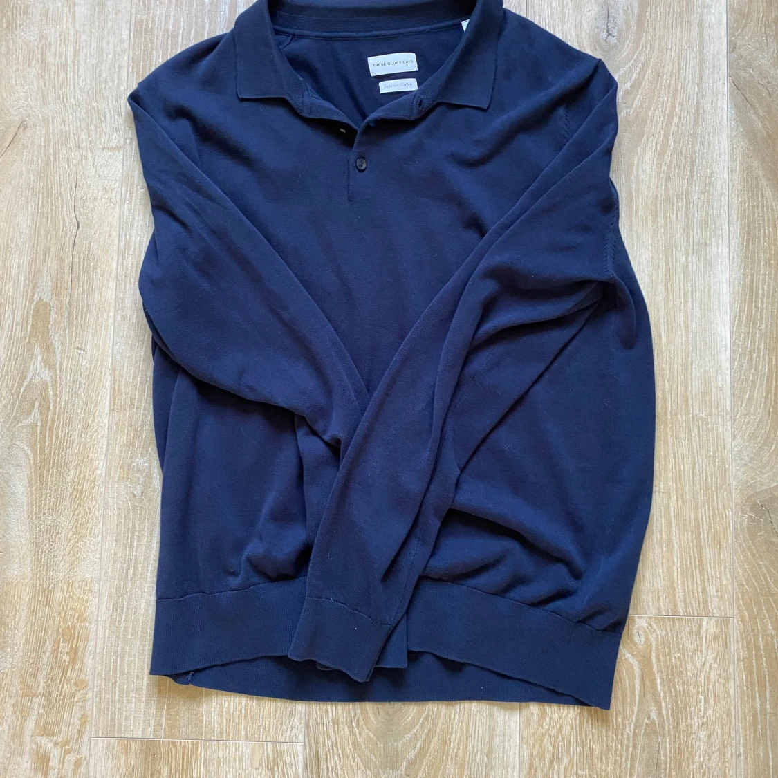 Snygg mörkblå pikétröja från These Glory Days i storlek XL men sitter som L. Passar till allt .Knappt använd och är i väldigt bra skick. Skriv vid fler funderingar 🙌