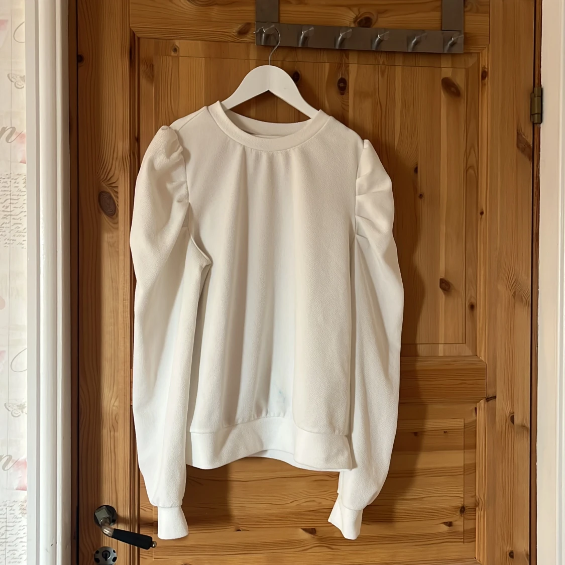 Vit jättefin tröja i strl S Liten blå fläck längst ner men jag tänker inte på den