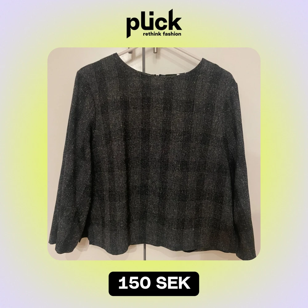 Säljer en stilren grå tröja från Visual Clothing Project. Tröjan har ett diskret rutmönster och långa ärmar. Perfekt för en elegant och avslappnad look.