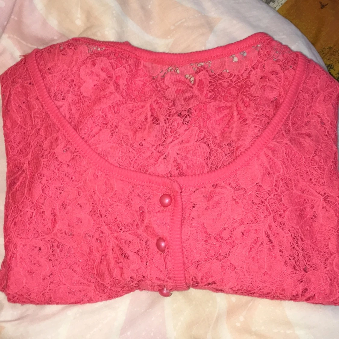 Oanvänd somrig mörkrosa kofta i spets med fina detaljer. Jättefin på. Storlek S eller liten M. Kan betalas kontant eller via Swish, kan mötas upp någonstans i Stockholm.