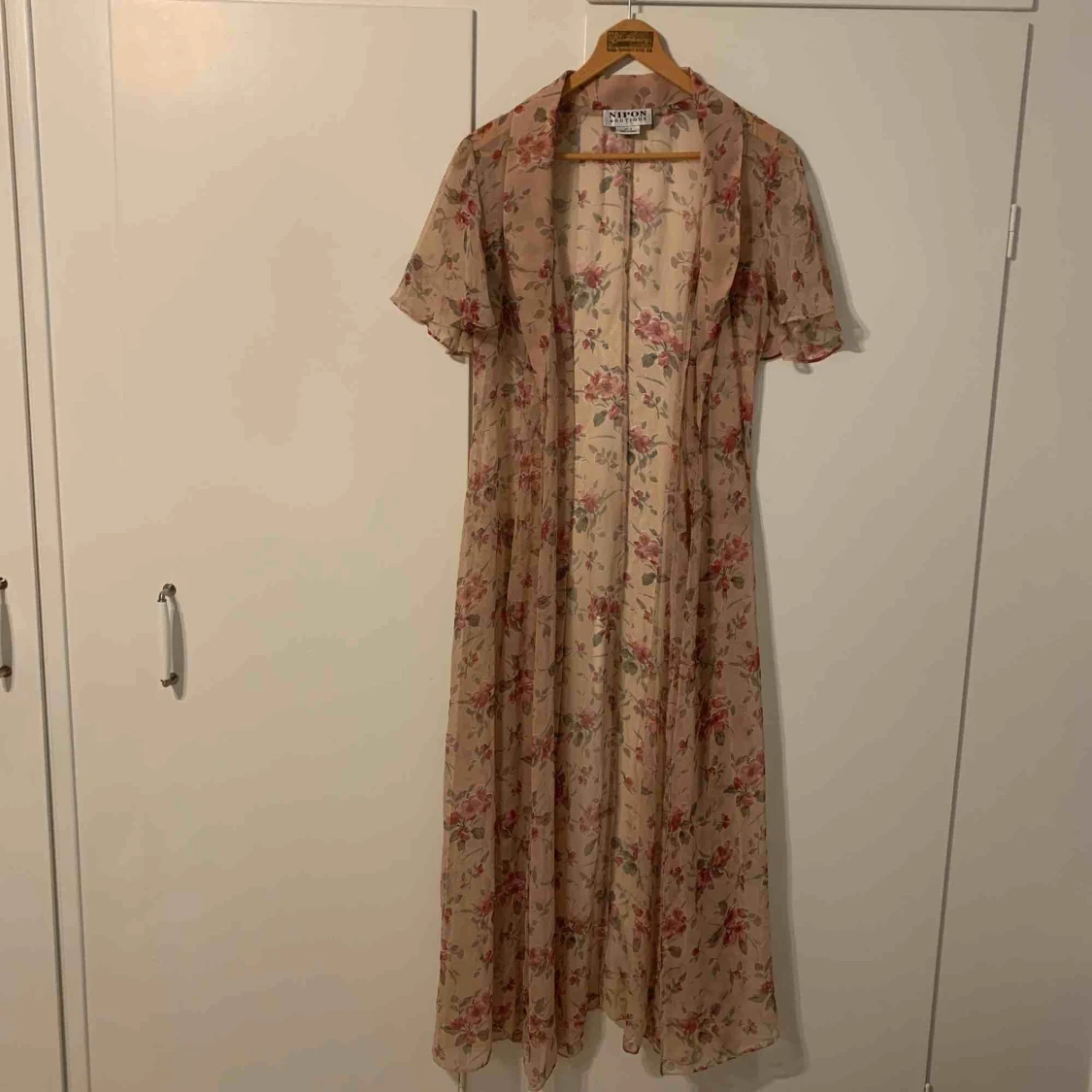 Blommig lång kaftan i skirt tyg. Kan knytas omlott som klänning, saknas dock midjeband.