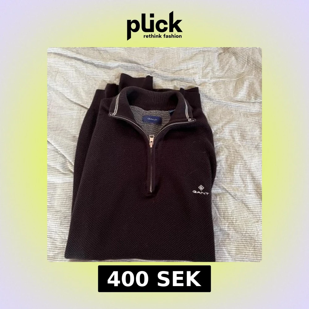Säljer en svart stickad tröja från GANT med halv dragkedja och vit broderad logga på bröstet. Tröjan har hög krage med vit detaljsöm och är perfekt för lager-på-lager-stil. Klassisk och stilren modell. Den har två defekter men är lätt lagade. Priset går därför att diskuteras👍😁