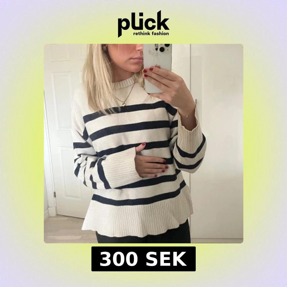 Säljer en snygg randig tröja i beige och mörkblå. Skriv om frågor🩷