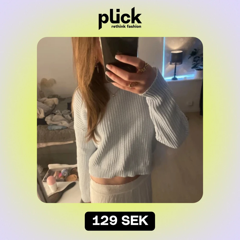 Vit fluffig stickad tröja - Mysig vit stickad tröja med fluffig yta och långärmad modell. Perfekt för kyliga dagar och har en loose passform som ger en avslappnad vibe. Enkel att matcha med både jeans och leggings. Lite makeup på halsen men tröjan ska tvättas o syns knappast❤️☺️🫰🏼😅😅