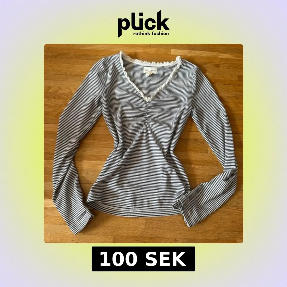 Supersöt långärmad topp från Holly & Whyte i svartvitt randigt med v-ringning och spetsdetaljer runt halsen. Smickrande rynk framtill och mjukt bomullsmaterial. Perfekt för dig som gillar en feminin och chill stil.
