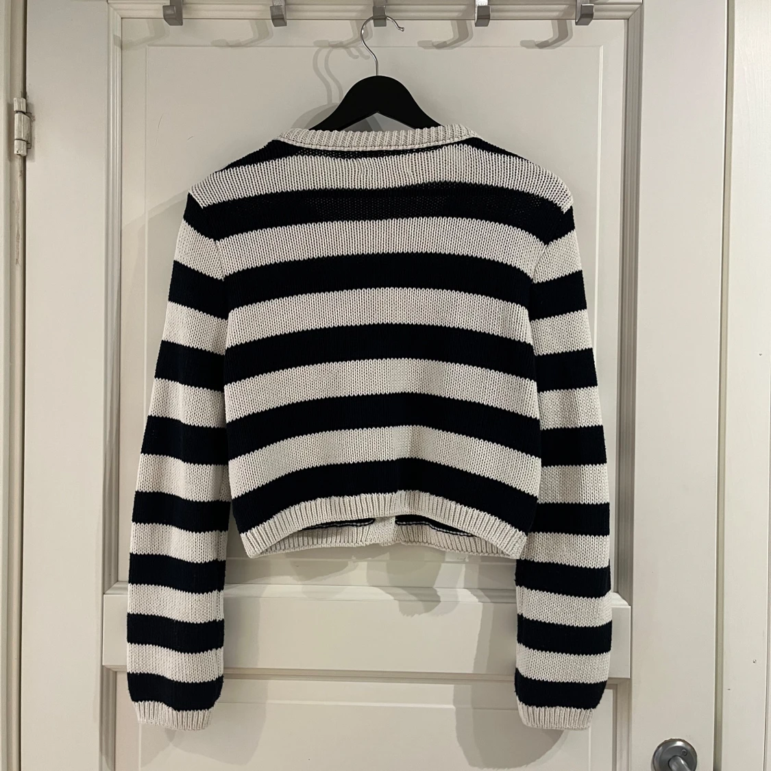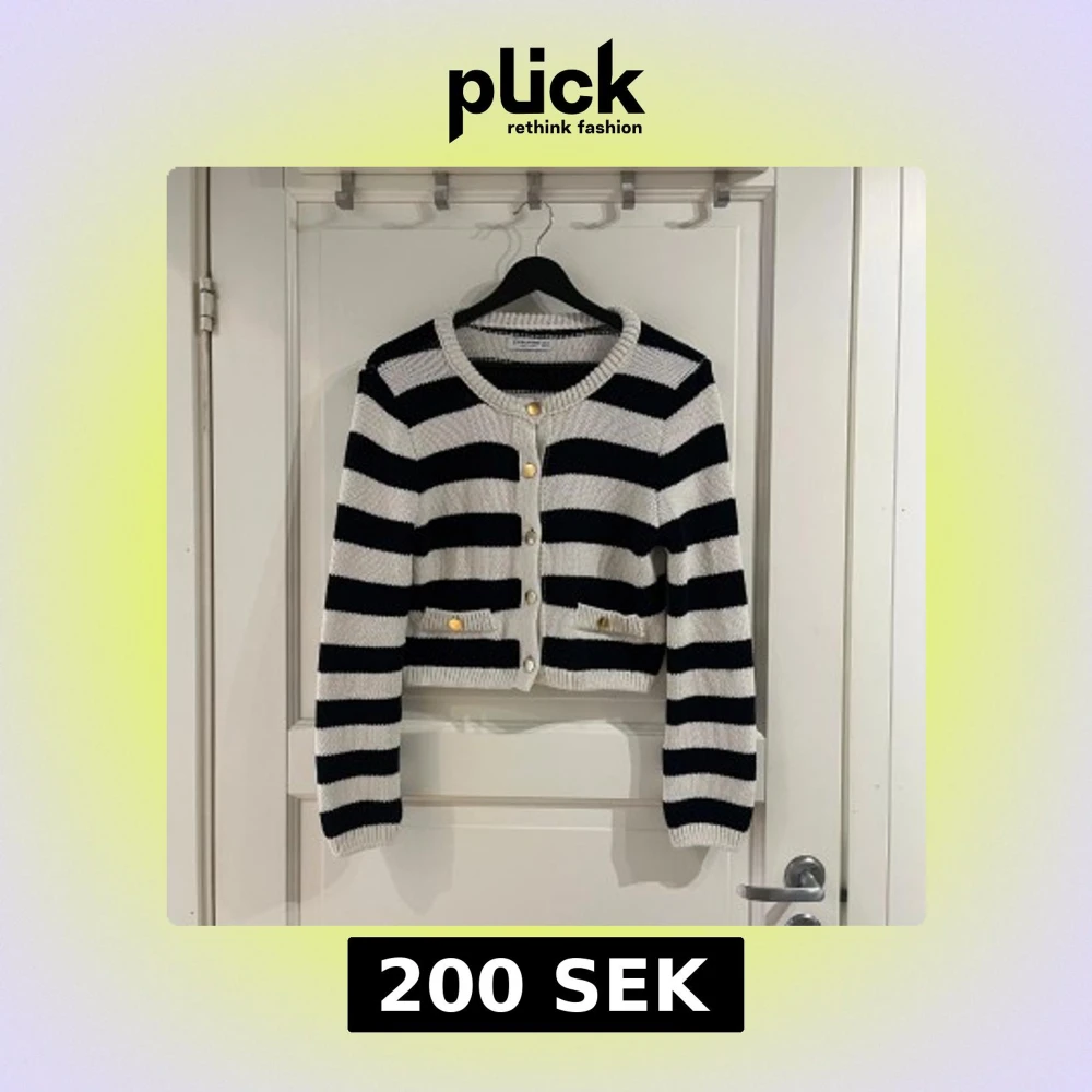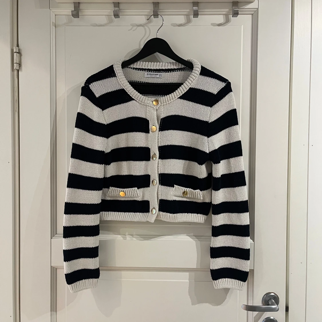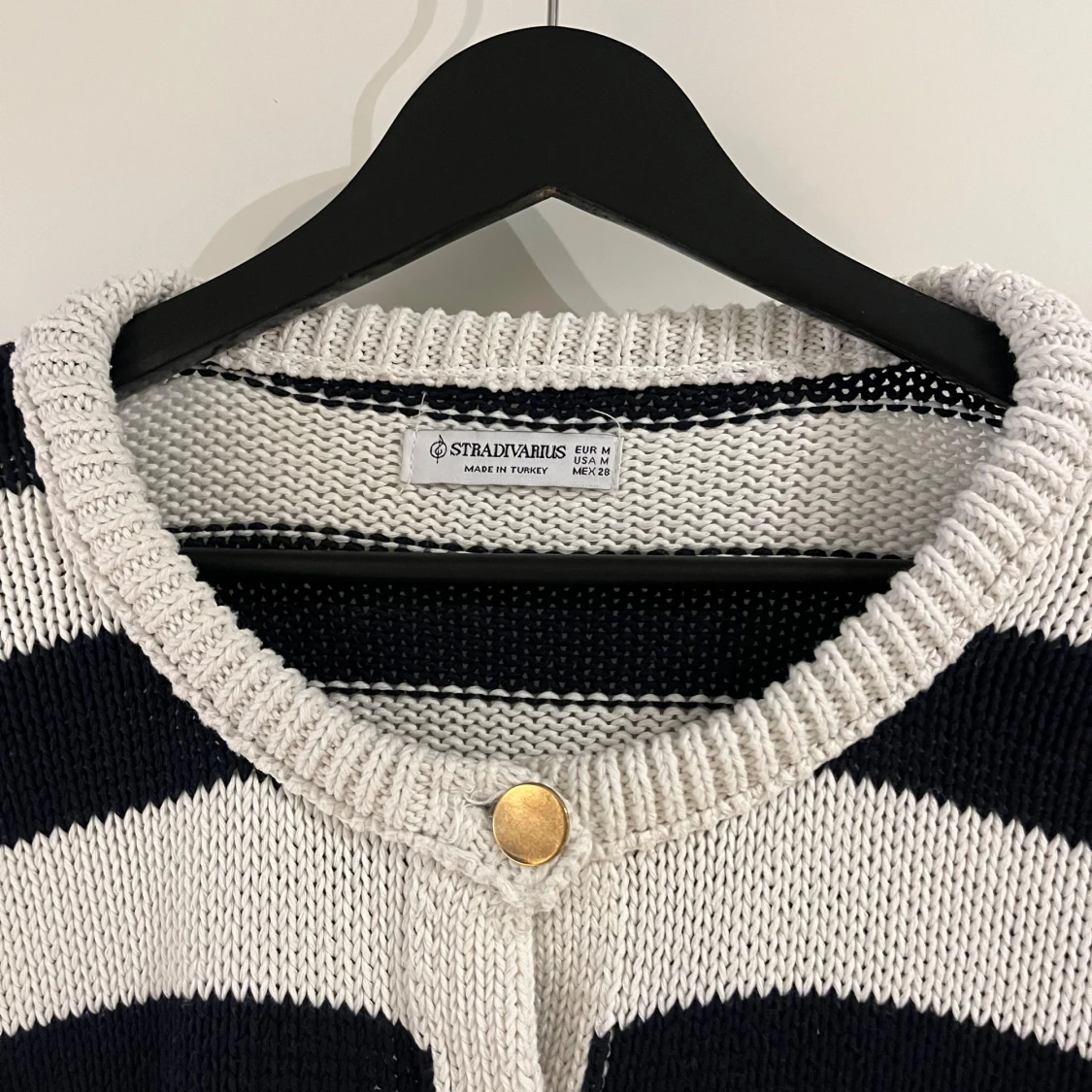 Söt marinblå och svart randig stickad kofta från Stradivarius. Koftan är croppad med guldknappar💙Perfekt till sommaren