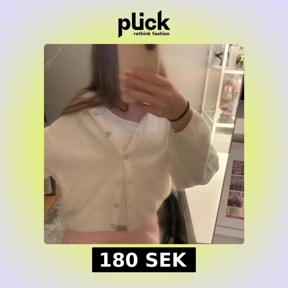 säljer denna vita super fina stickade koftan, går att använda på så många olika sätt med att bara knäppa den annorlunda vilket är så najs💓💓💓