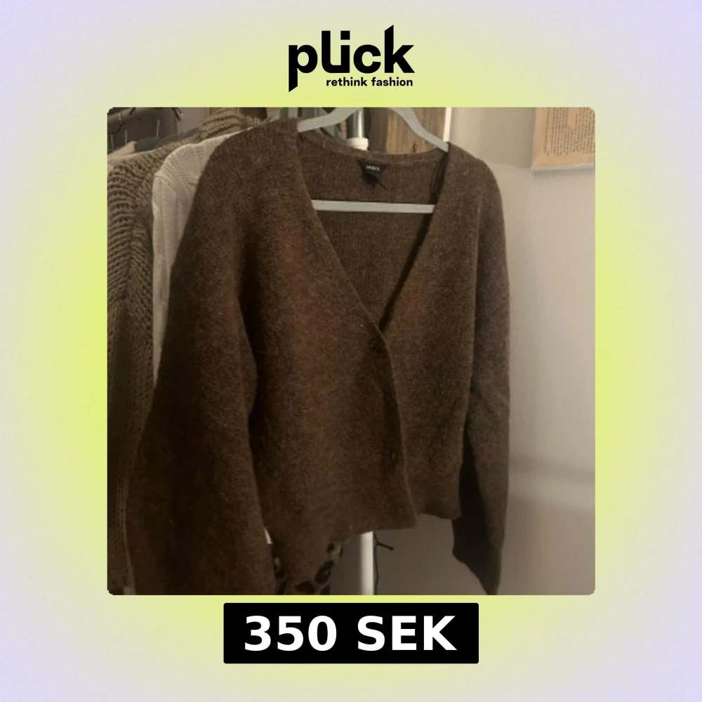 Säljer en mysig brun kofta från Lindex. Den har en v-ringad design med knappar framtill och långa ärmar. Perfekt för kyligare dagar och enkel att matcha med olika outfits.