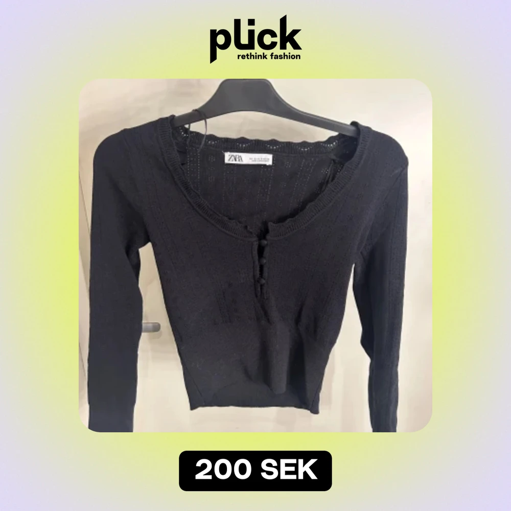 Säljer denna svart finstickad tröja från Zara. v-ringad med knappar framtill, nästan aldrig använd i nyskick💕