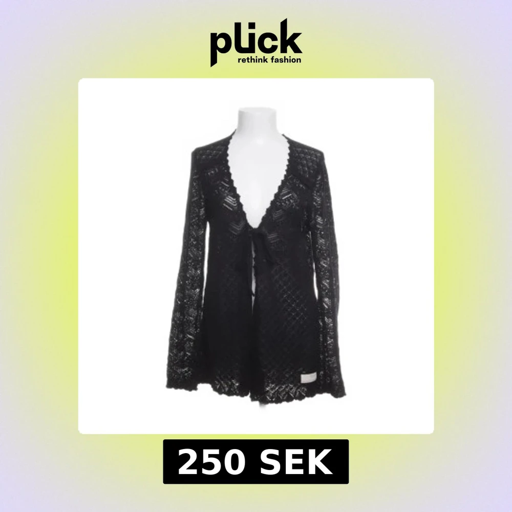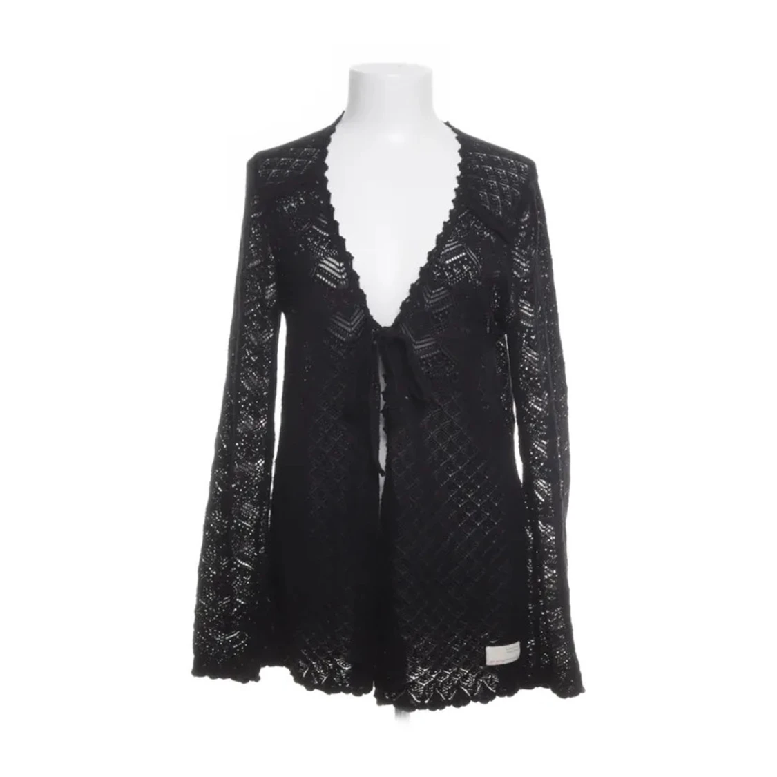 Elegant svart spetskofta med långa ärmar och knytband framtill. Perfekt för att lägga till en touch av stil till din outfit. Koftan har ett vackert mönster och är lätt och luftig.