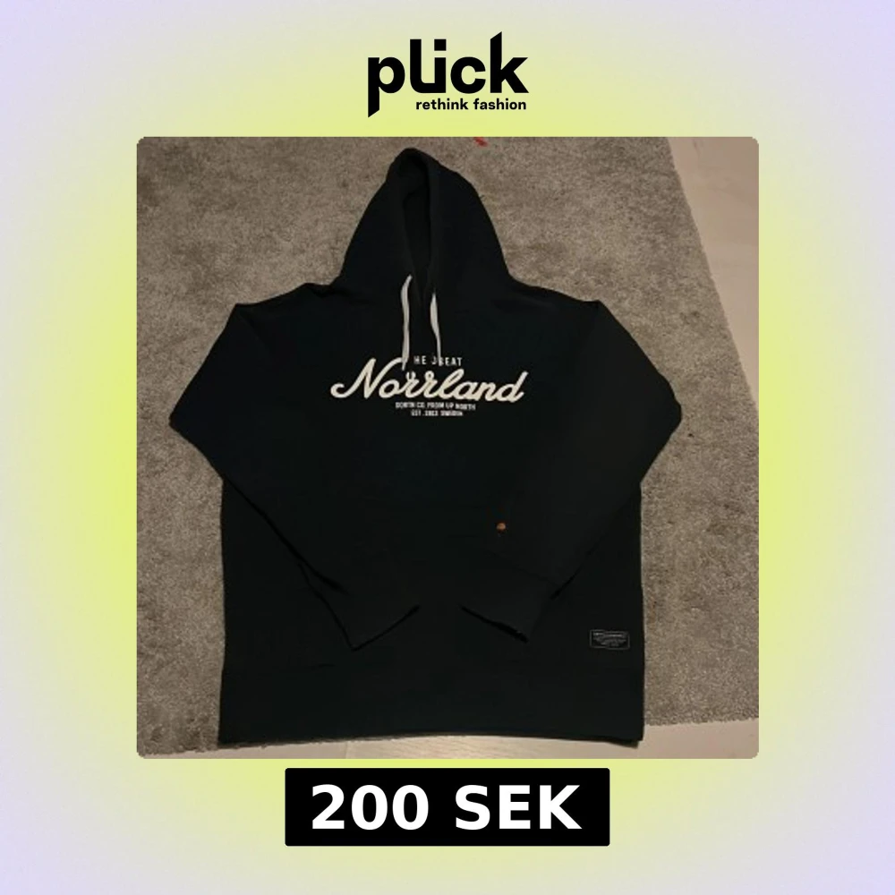 Säljer en snygg mörkblå hoodie från SQRTN Company med texten 'The Great Norrland' tryckt på framsidan. Hoodien har en justerbar dragsko i huvan och är perfekt för en avslappnad stil. Tröjan är lite missfärgad på luvan. Hör av er om ni har några frågor och priset är såklart inte hugget i sten