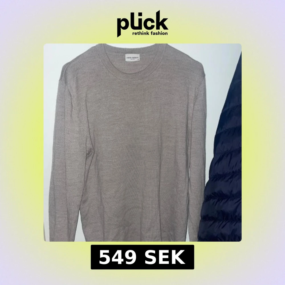 Säljer en stilren beige stickad tröja från John Henric i merinoull.