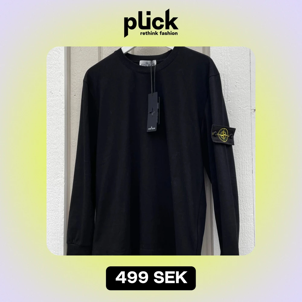 Säljer en stilren svart långärmad tröja från Stone Island. Den har en ikonisk logga på ärmen och är i nytt skick med etikett kvar. Perfekt för både vardag och fest. Passar bra till jeans eller chinos för en avslappnad men snygg look.