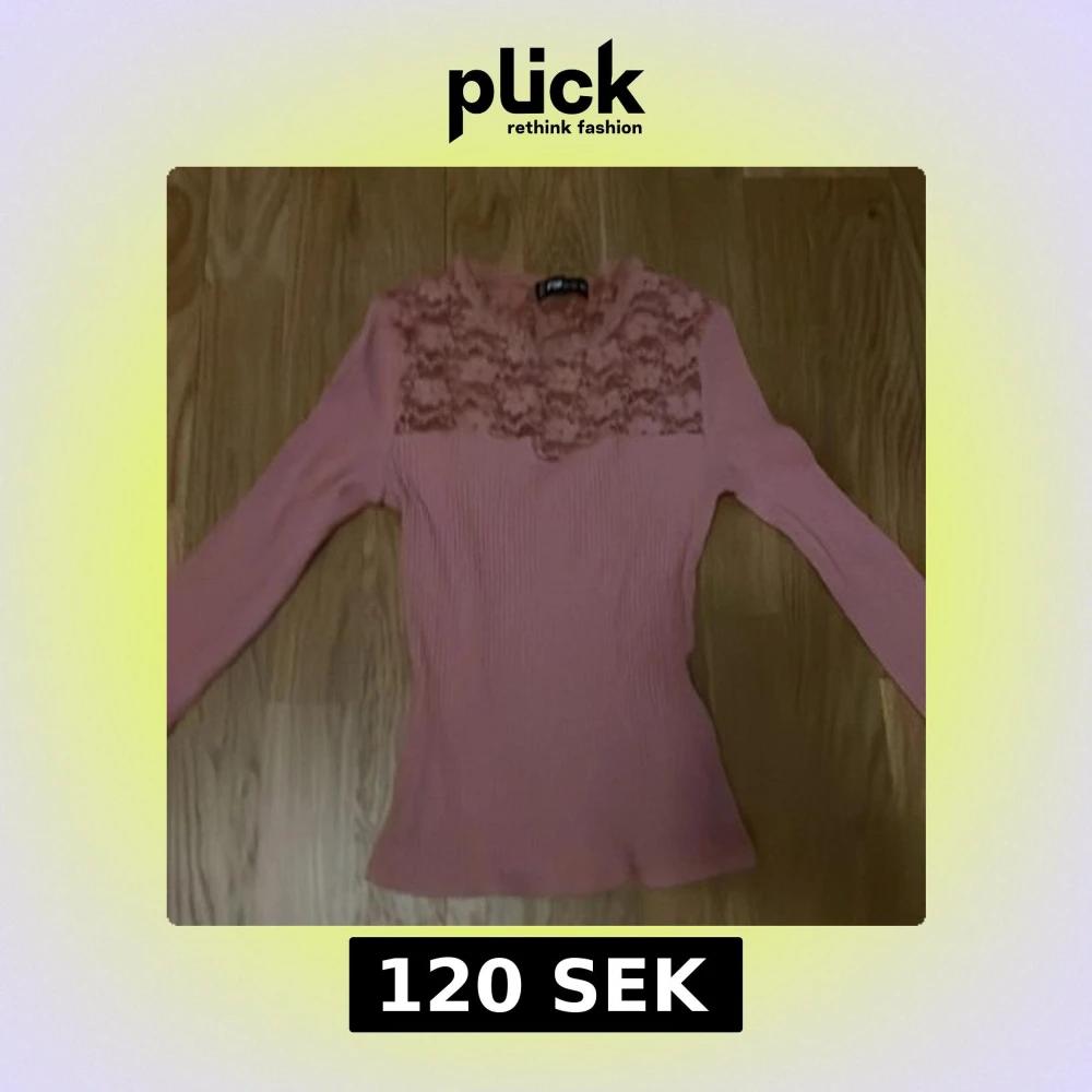 Snygg ljusrosa långärmad topp från Rue Paris med ribbad struktur och spetsdetaljer över bröstet och axlarna. Spetsen har blommigt mönster. Perfekt att styla med jeans eller kjol för en trendig look.