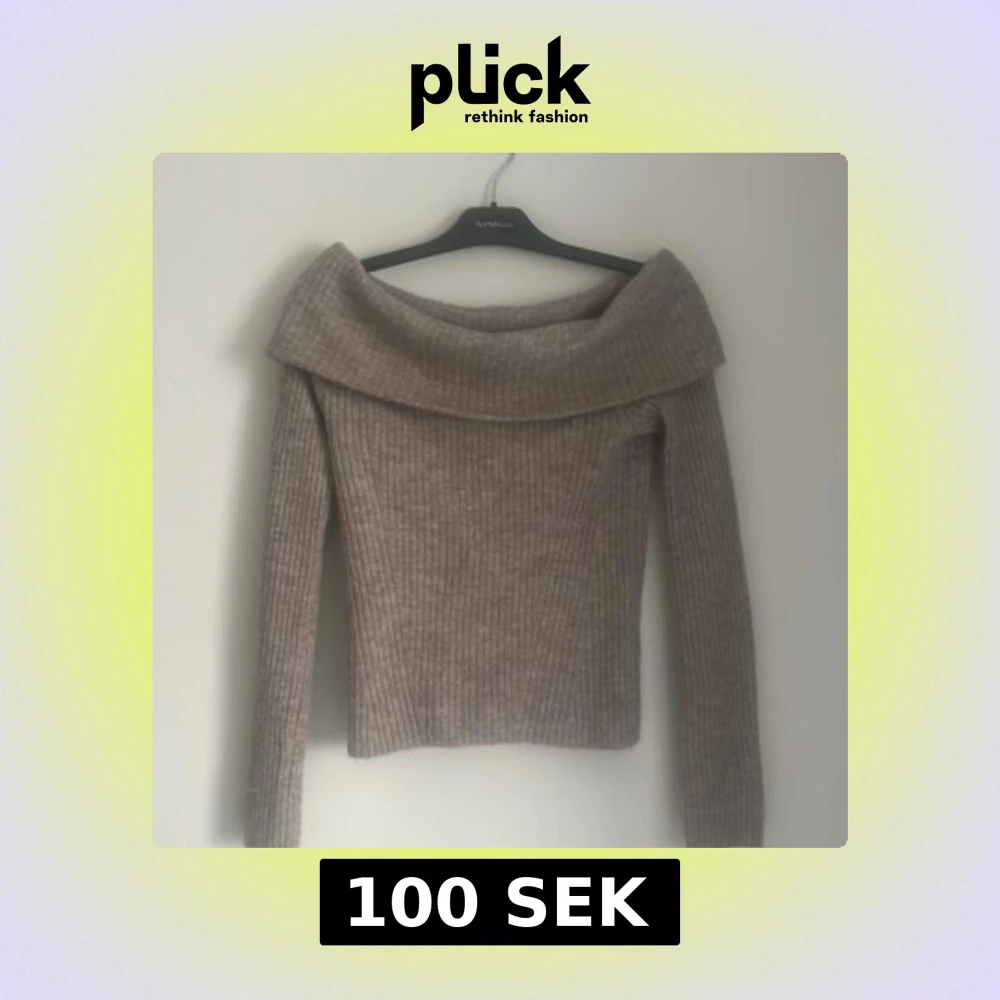 Säljer en stilren beige ribbad offshoulder tröja från H&M. Använd max 2 gånger och har inga tecken på användning så skulle säga att den fortfarande är i nyskick