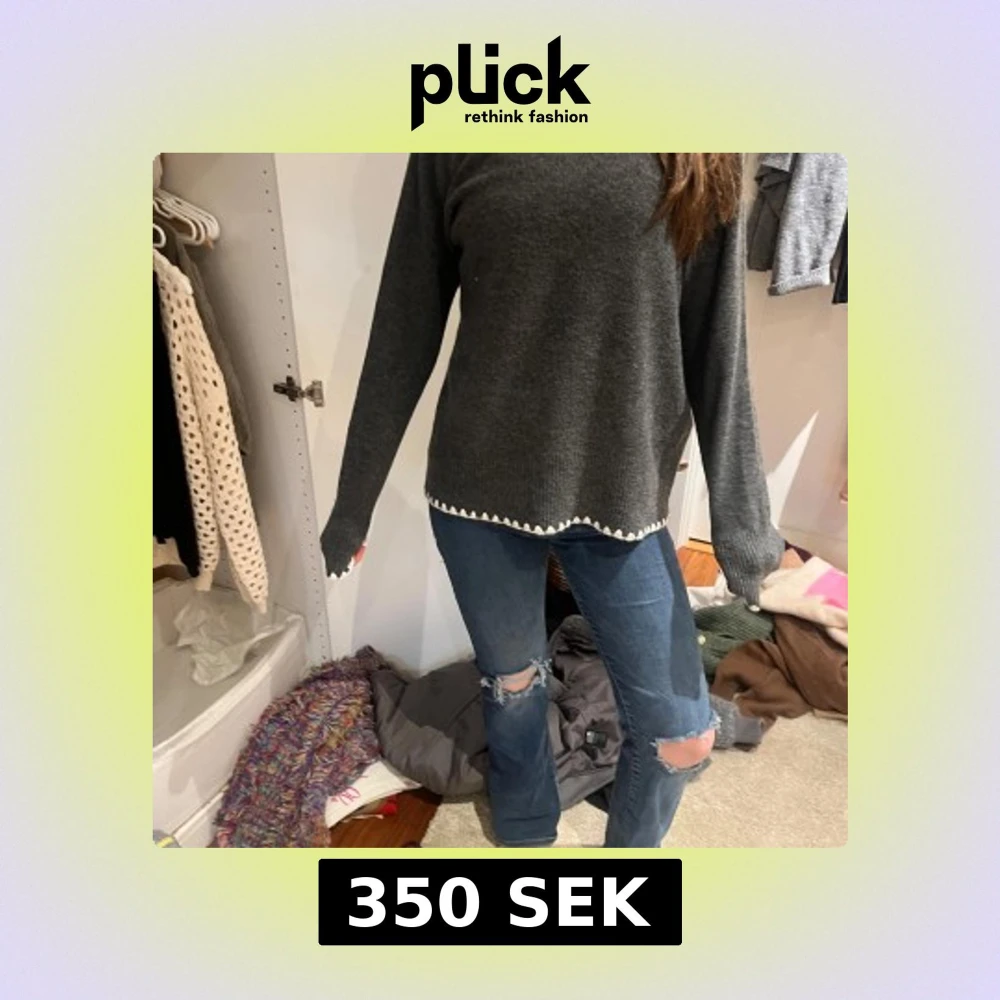 Säljer en stilren mörkgrå tröja med vit kantdetalj vid nederkanten. Tröjan har långa ärmar och en bekväm passform, perfekt för kyligare dagar. Helt oanvänd!