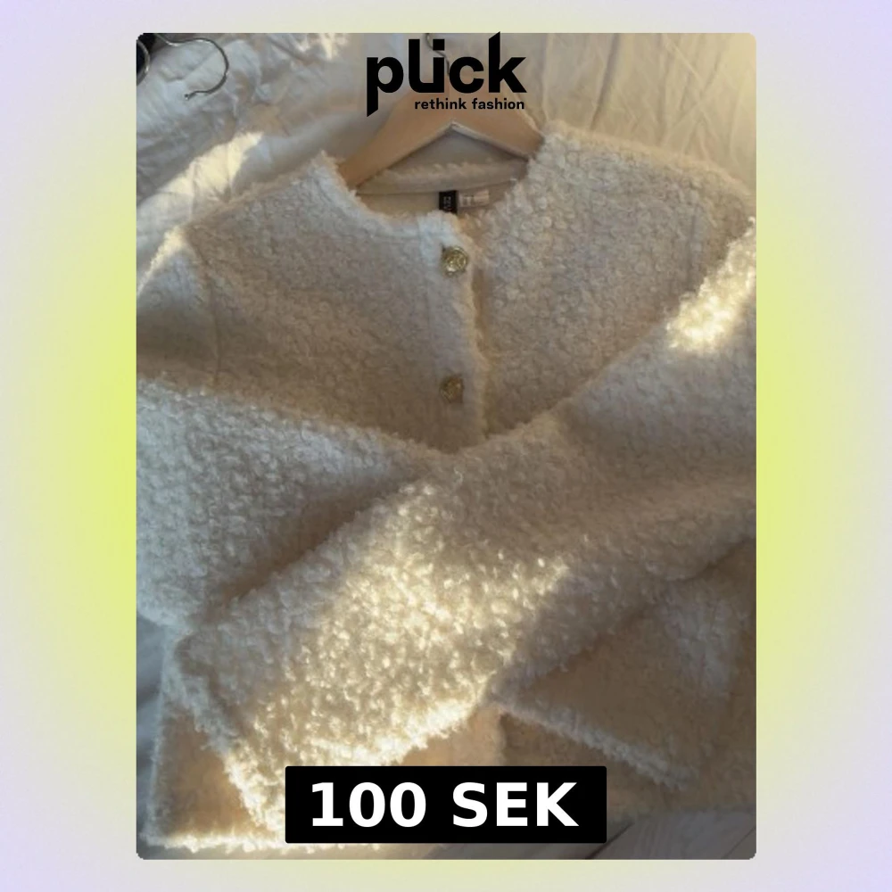 Säljer en fluffig vit kofta från Divided i storlek XS. Koftan har rund hals, långärmade ärmar och snygga guldfärgade knappar framtill. Materialet är mjukt och ger en cool, cozy vibe. Perfekt för dig som gillar stilrena och trendiga plagg.