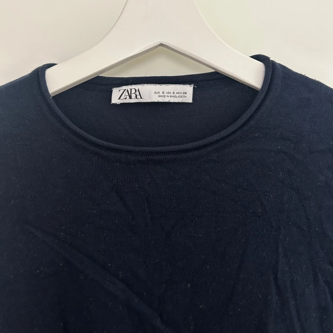 Marinblå stickad tröja från Zara i storlek S. Använd men i helt och fint skick.