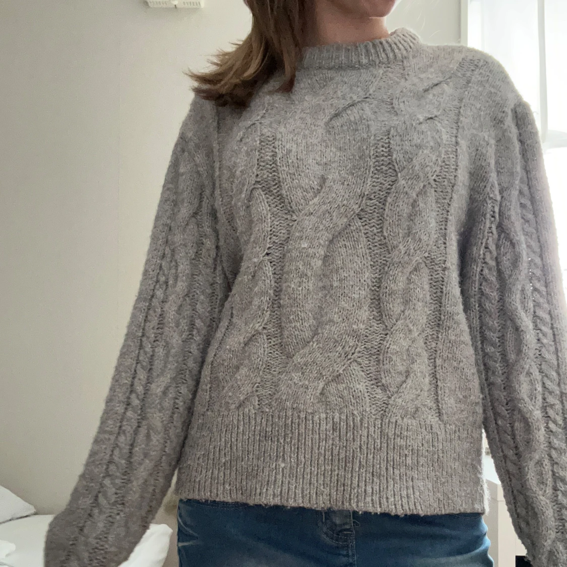 Grå stickad kabeltröja