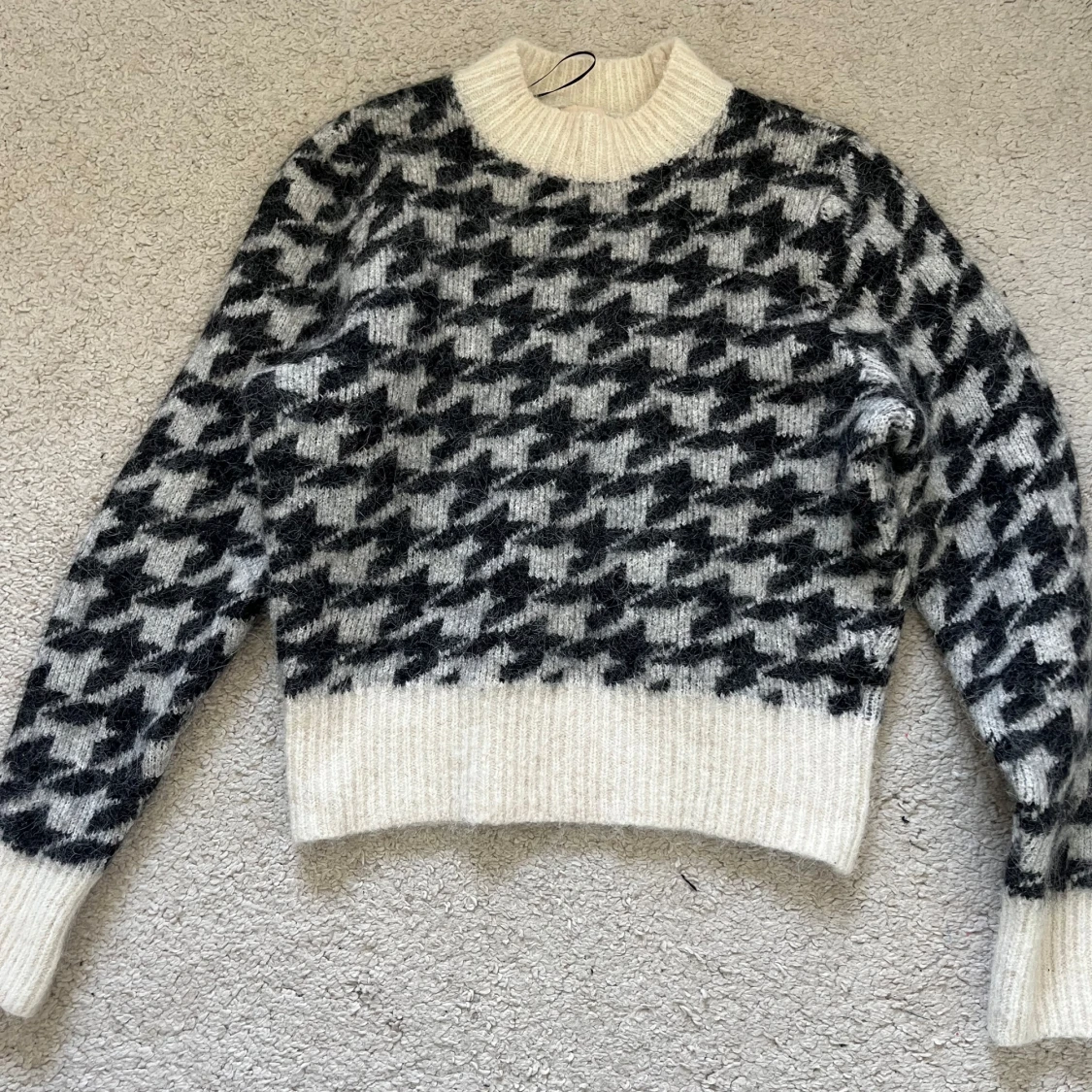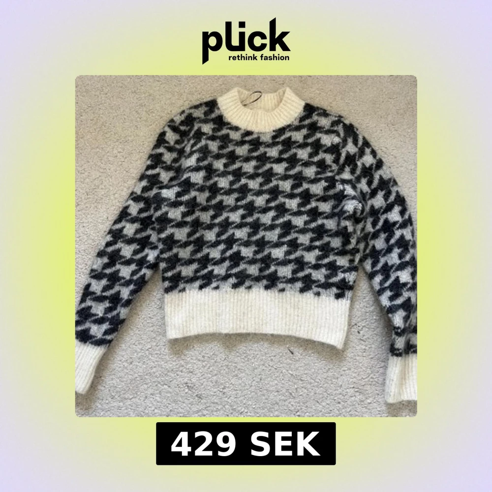 Supermjuk stickad tröja från H&M i alpaca blend, med svart och vitt hundtandsmönster. Varm o skön eftersom det är alpacka i den, säljer pga att jag inte änvädner den🥰