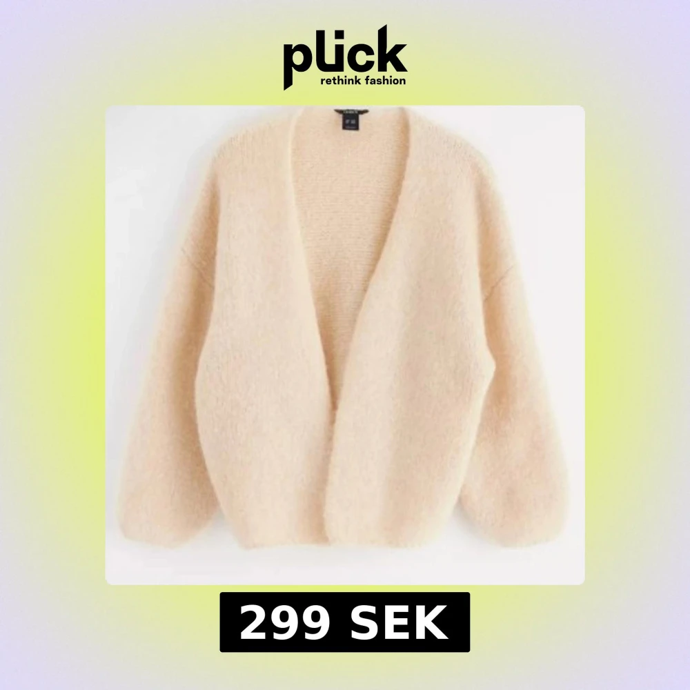 Mysig beige kofta från H&M med en öppen design. Perfekt för kyliga dagar med sin fluffiga och mjuka textur. Koftan har långa ärmar och en avslappnad passform.