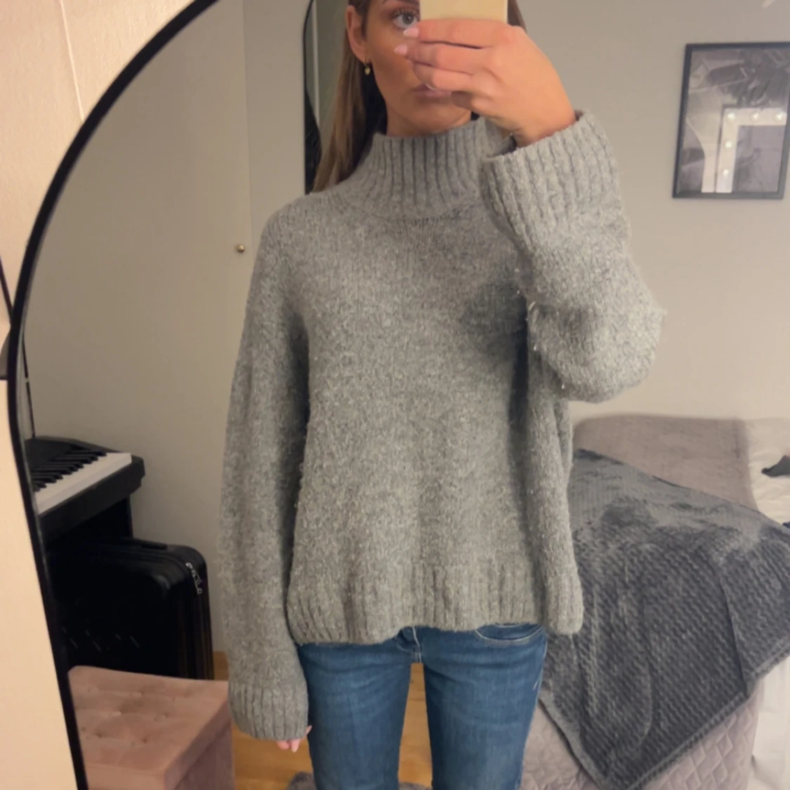 Jättefin stickad tröja från H&M med hög krage!!🤍