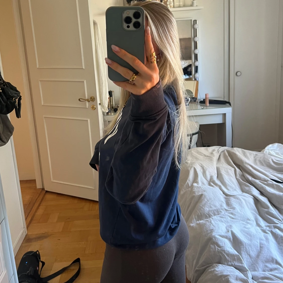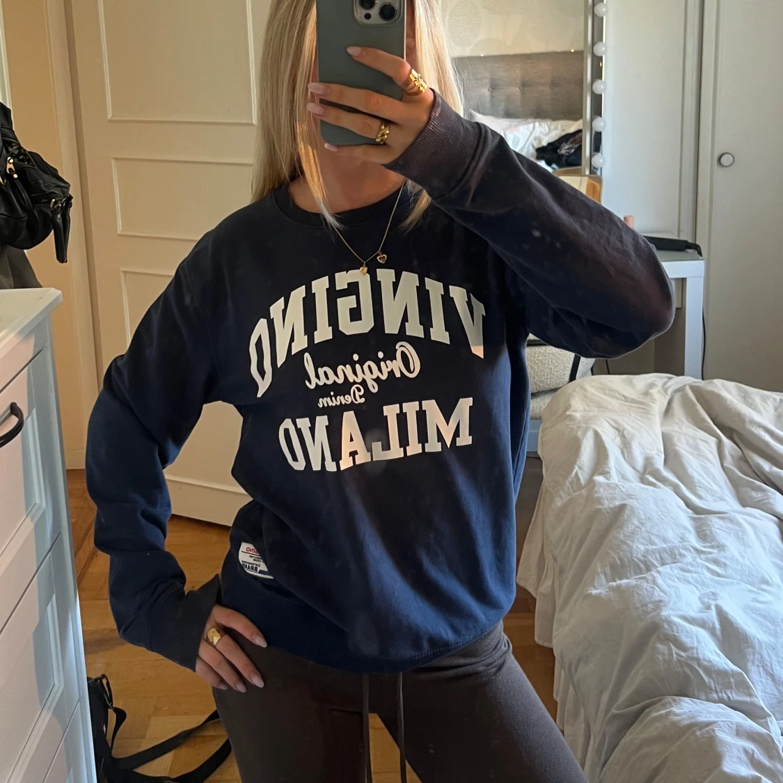 Mörkblå sweatshirt från Vingino. Super skön och snygg!😍sitter som en oversized S. Små fläckar från blekning på ena mudden, se sista bild