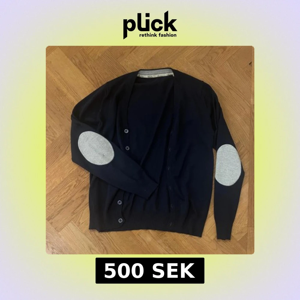 Säljer min mörkblåa kofta från Stenströms med grå armbågslappar och ribbad grå kant vid halsen. Koftan har knappar framtill och är långärmad. Perfekt för lager-på-lager och snygg till både jeans och chinos.