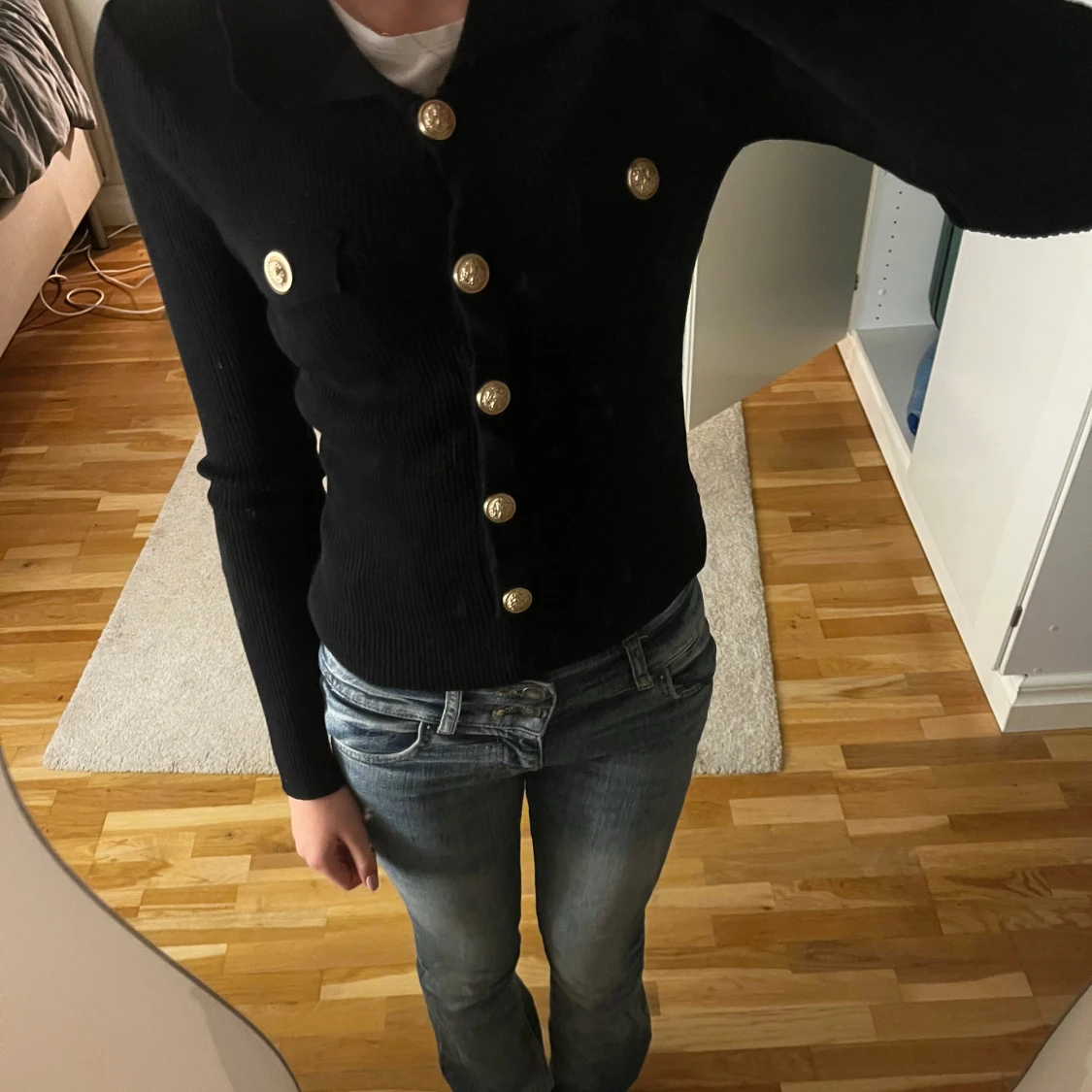 Jättefin tröja med guldknappar från moocci. (Köpt från raglady). Endast använd 2 gånger och är i superfint skick. Står i storlek m/L men är väldigt konstigt då den passar mig som är xs-s. Lägg gärna prisförslag!💞