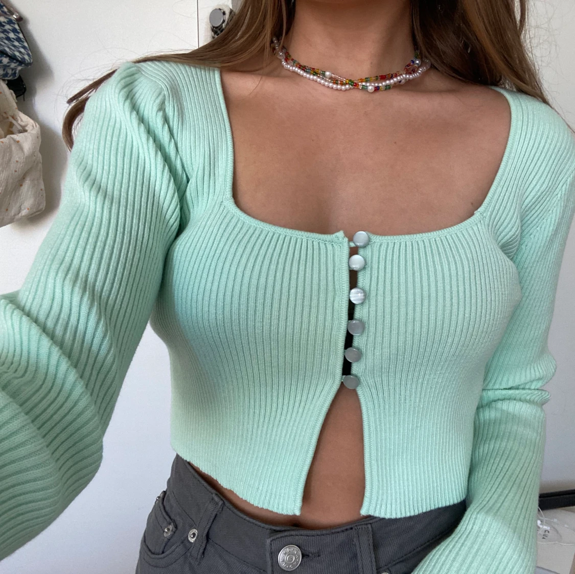 Gullig mintgrön tröja, knappt använd 🤍🤍