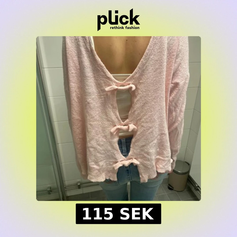 Säljer en söt rosa tröja med lång ärm och unik design med öppen rygg och tre rosetter. Perfekt för en avslappnad och stilfull look. Passar bra till jeans eller kjol.💞💞Hittar inte storleken men jag på bilden brukar ha storlek S!