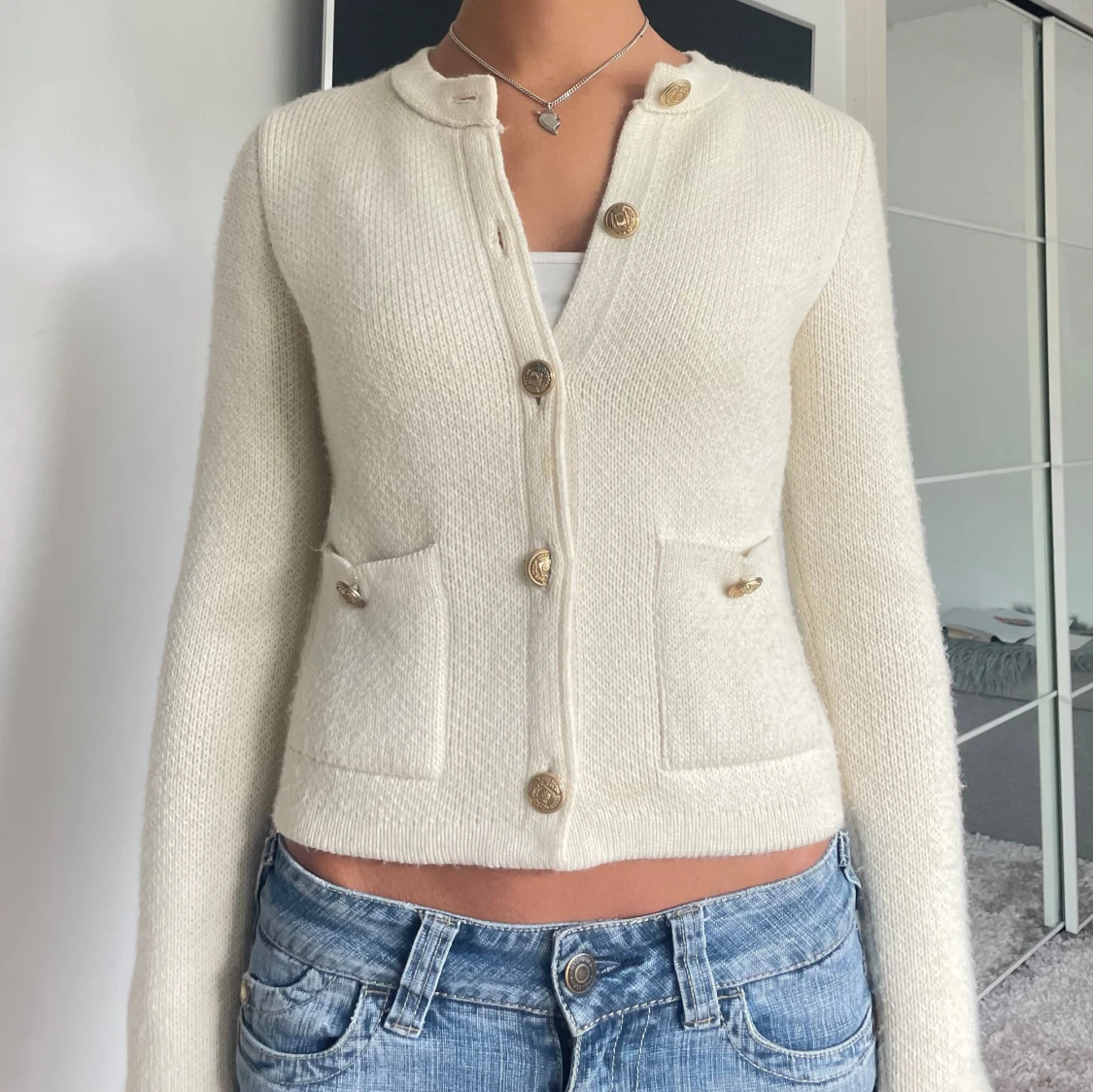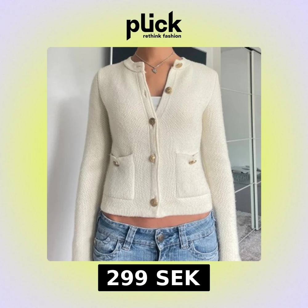 Superfin vit kofta från Zara med snygga guldknappar och två fickor framtill. 💞